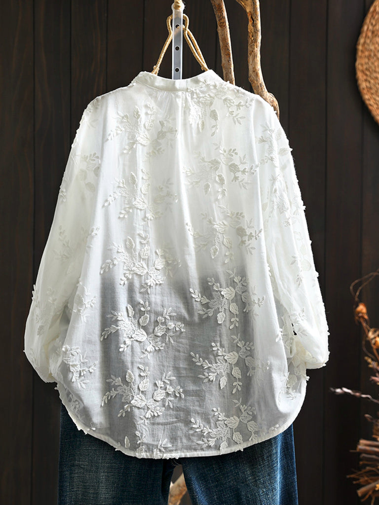 Kunstnerisk bluse med stående krave og broderi i 100% bomuld til kvinder