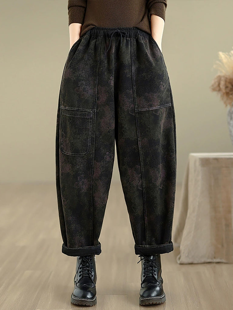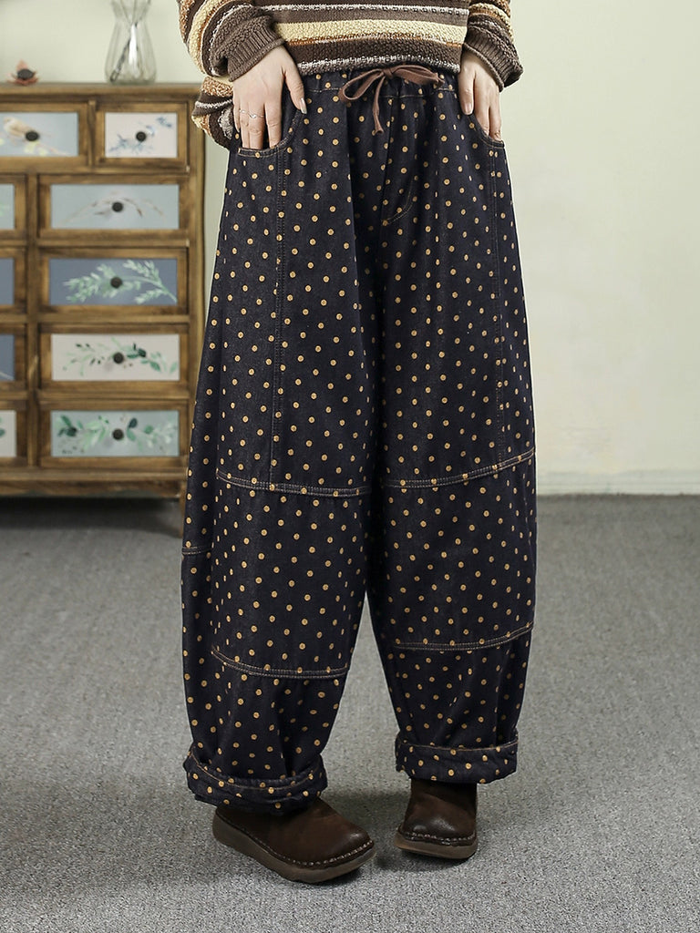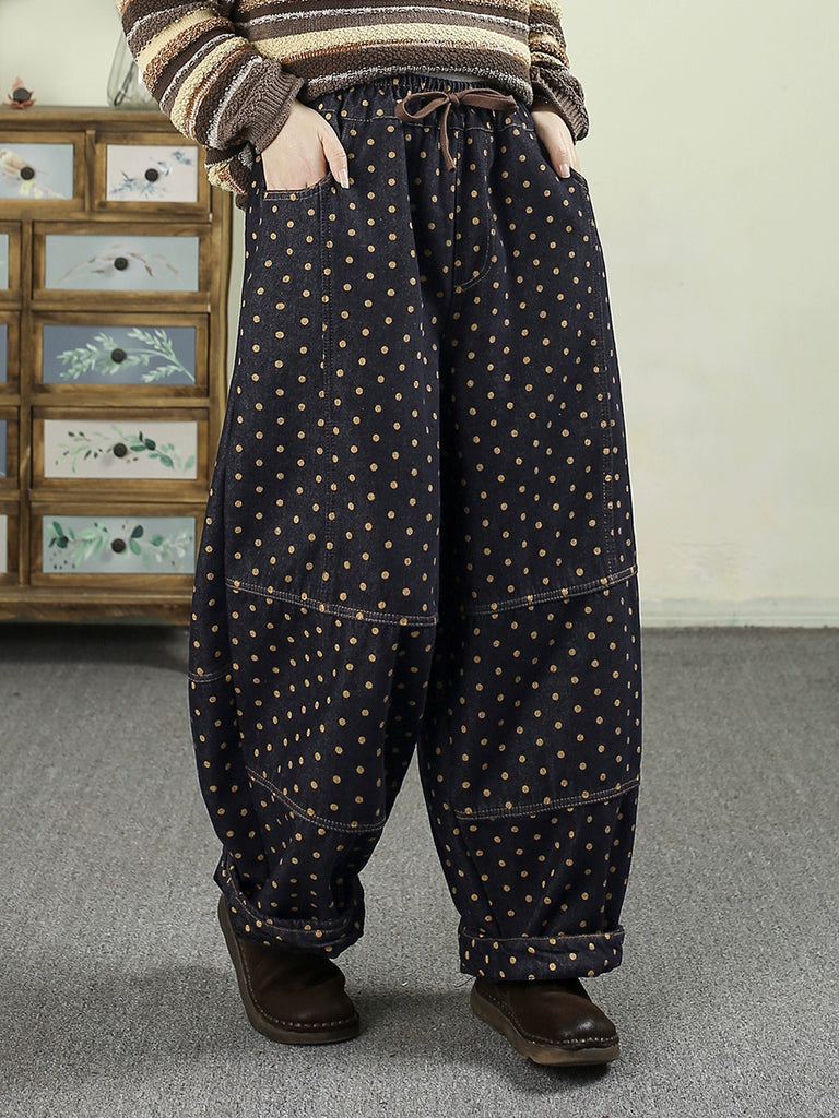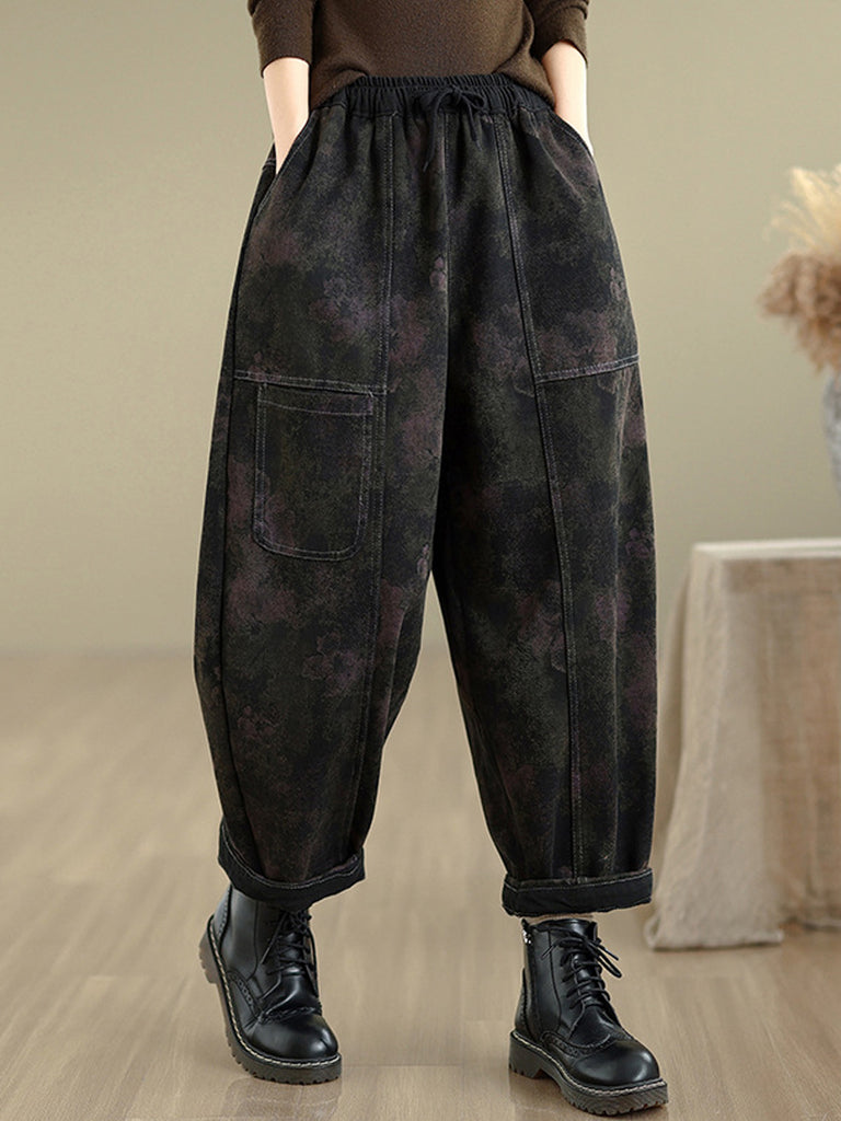 Kvinder Efterår Retro Denim Fleeceforede Harembukser
