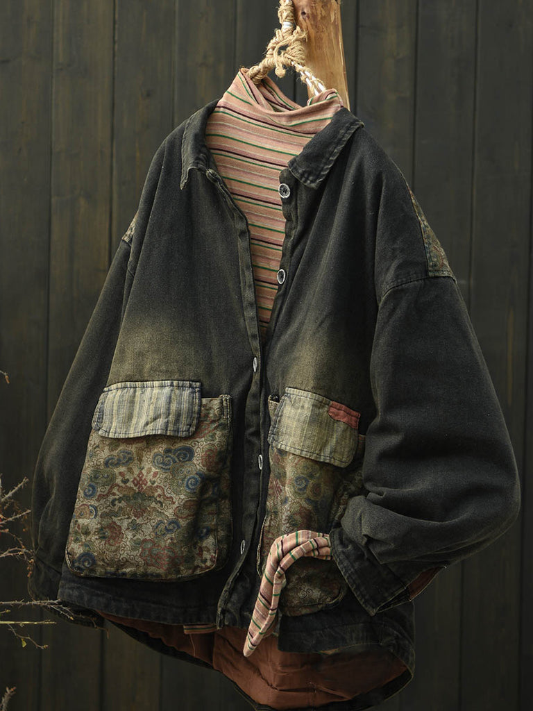 Kvinder Etnisk Blomster Denim Spliced Bomuldspolstret Frakke