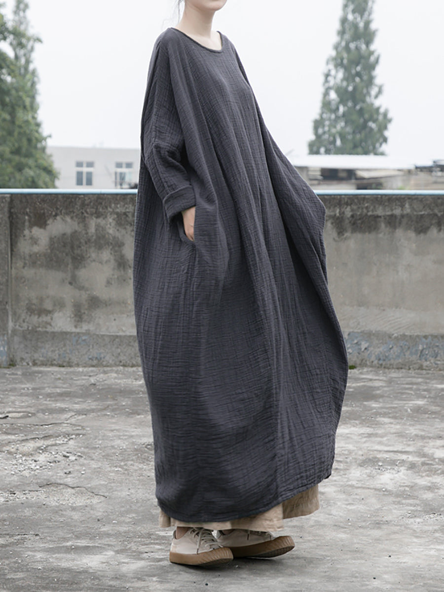 Kvinder Casual Autumn Solid O-Neck Bomuld Linned Kjole