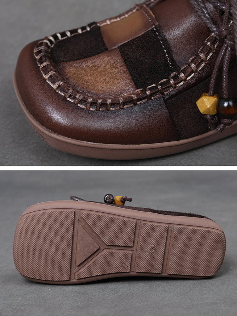 Kvinder Retro Ægte Læder Plaid Spliced Flade Sko