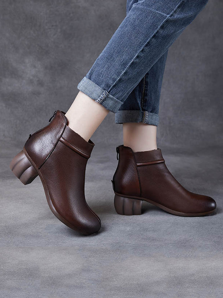 Kvinder Vintage ægte læder ankelstøvler med mellemhøj hæl