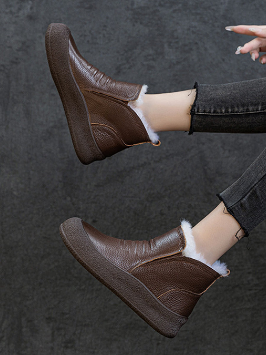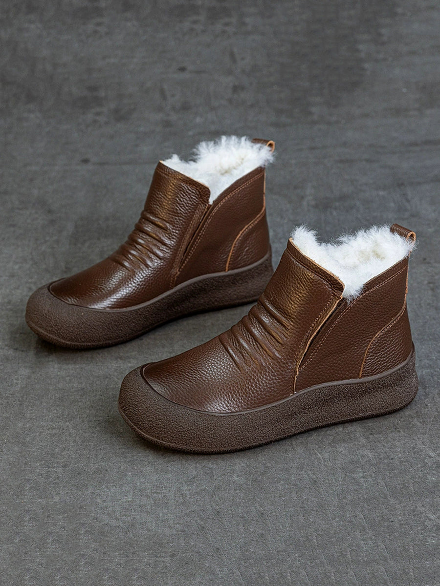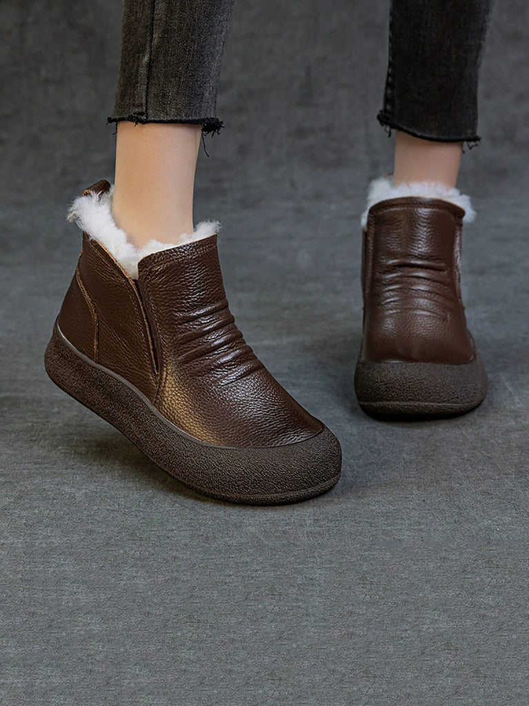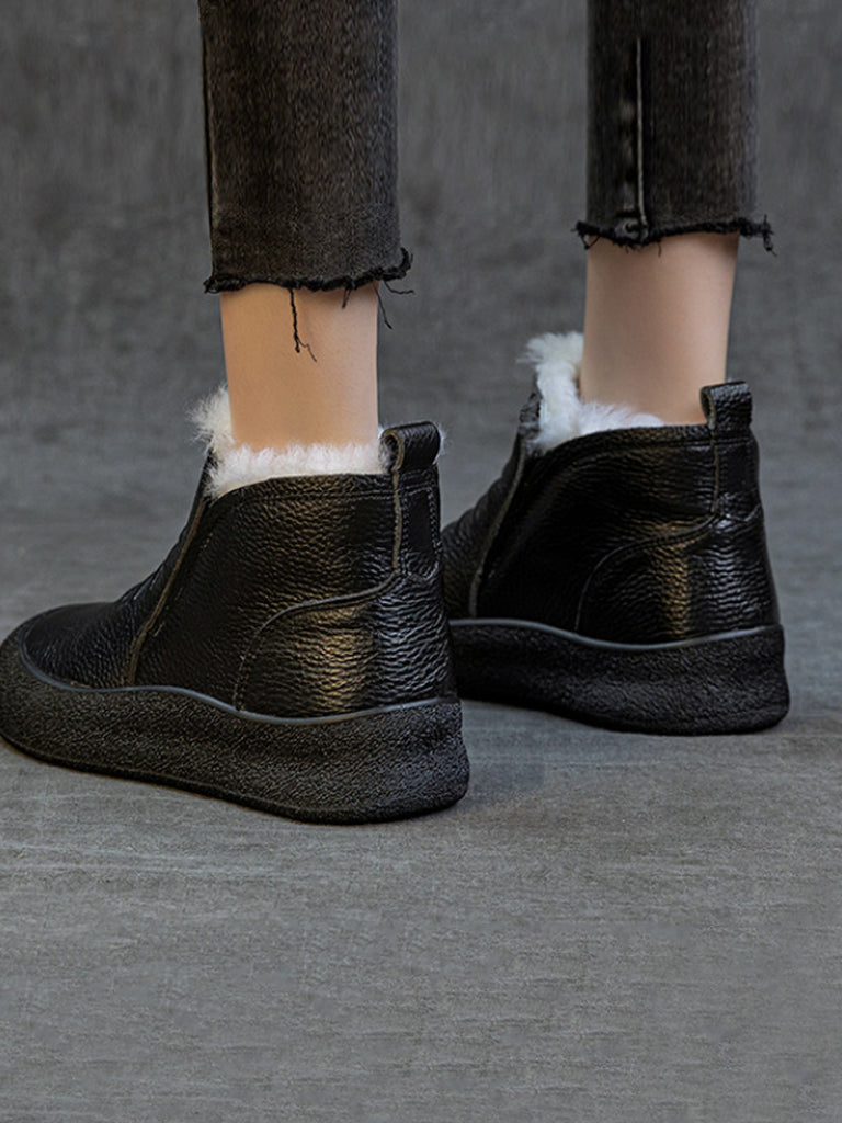 Kvinder Vinter Ankelstøvler i ægte læder med fleecefor