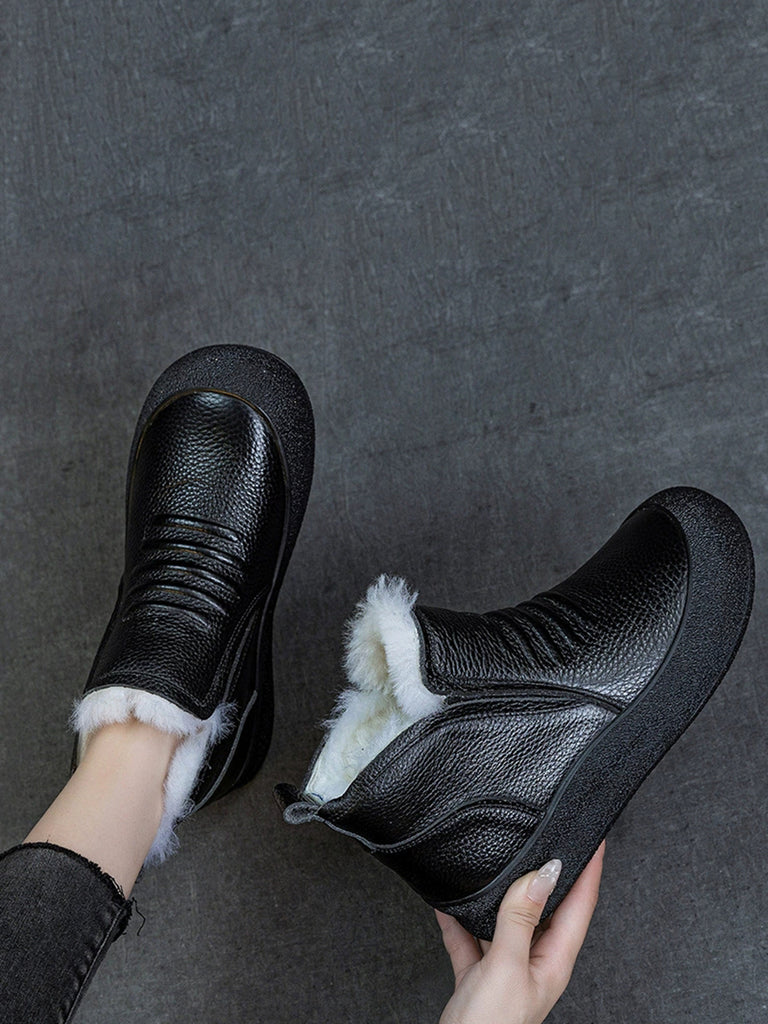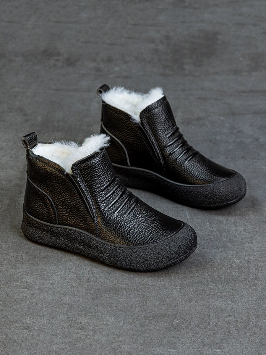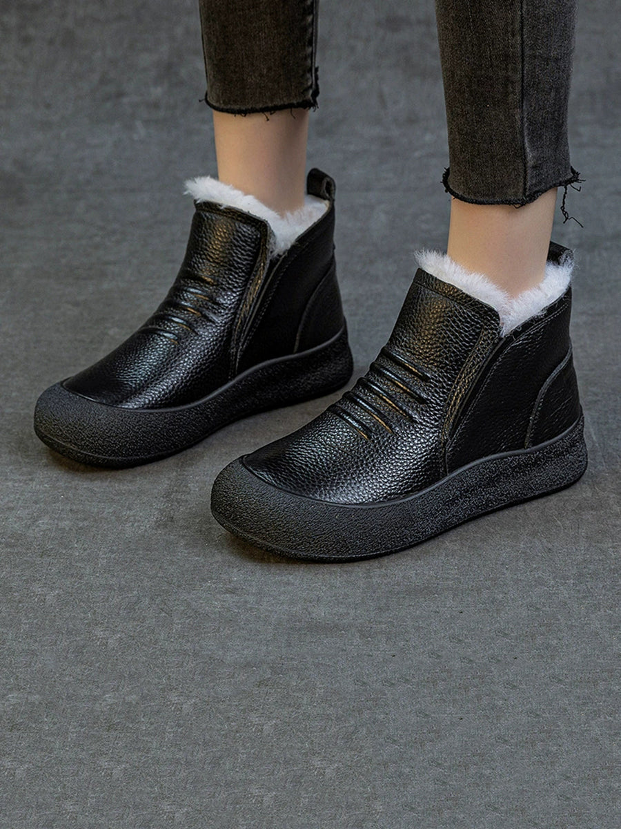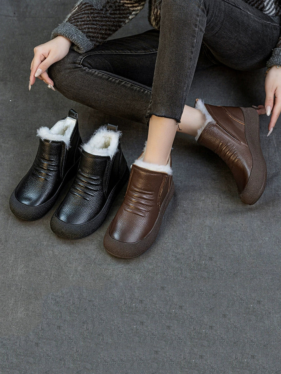 Kvinder Vinter Ankelstøvler i ægte læder med fleecefor