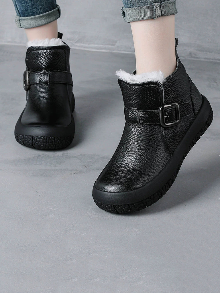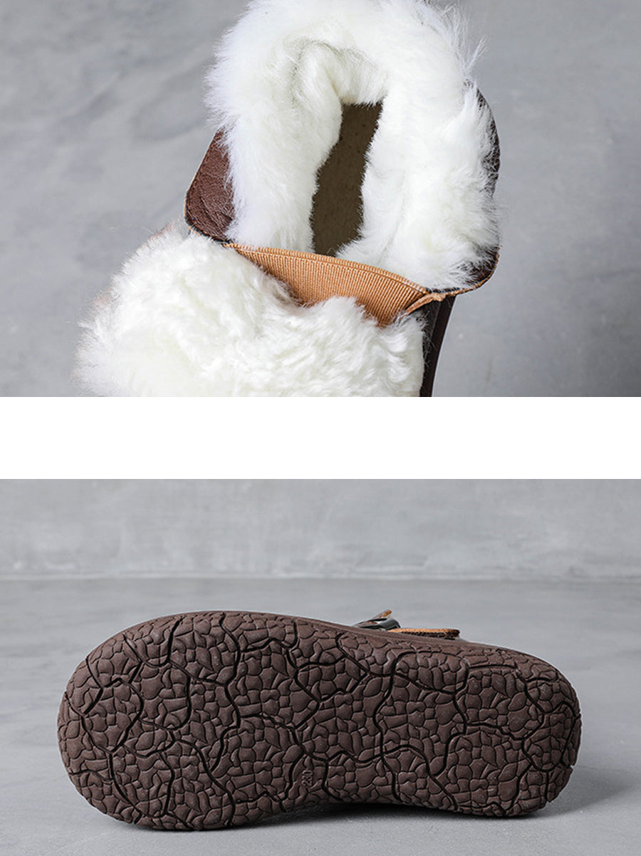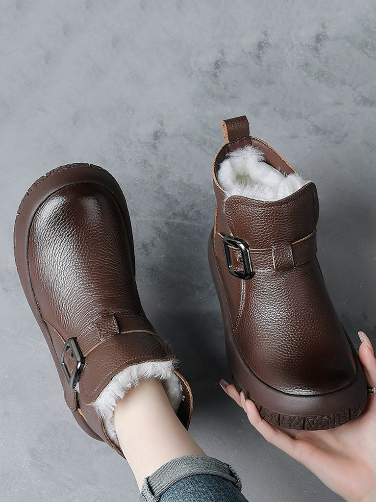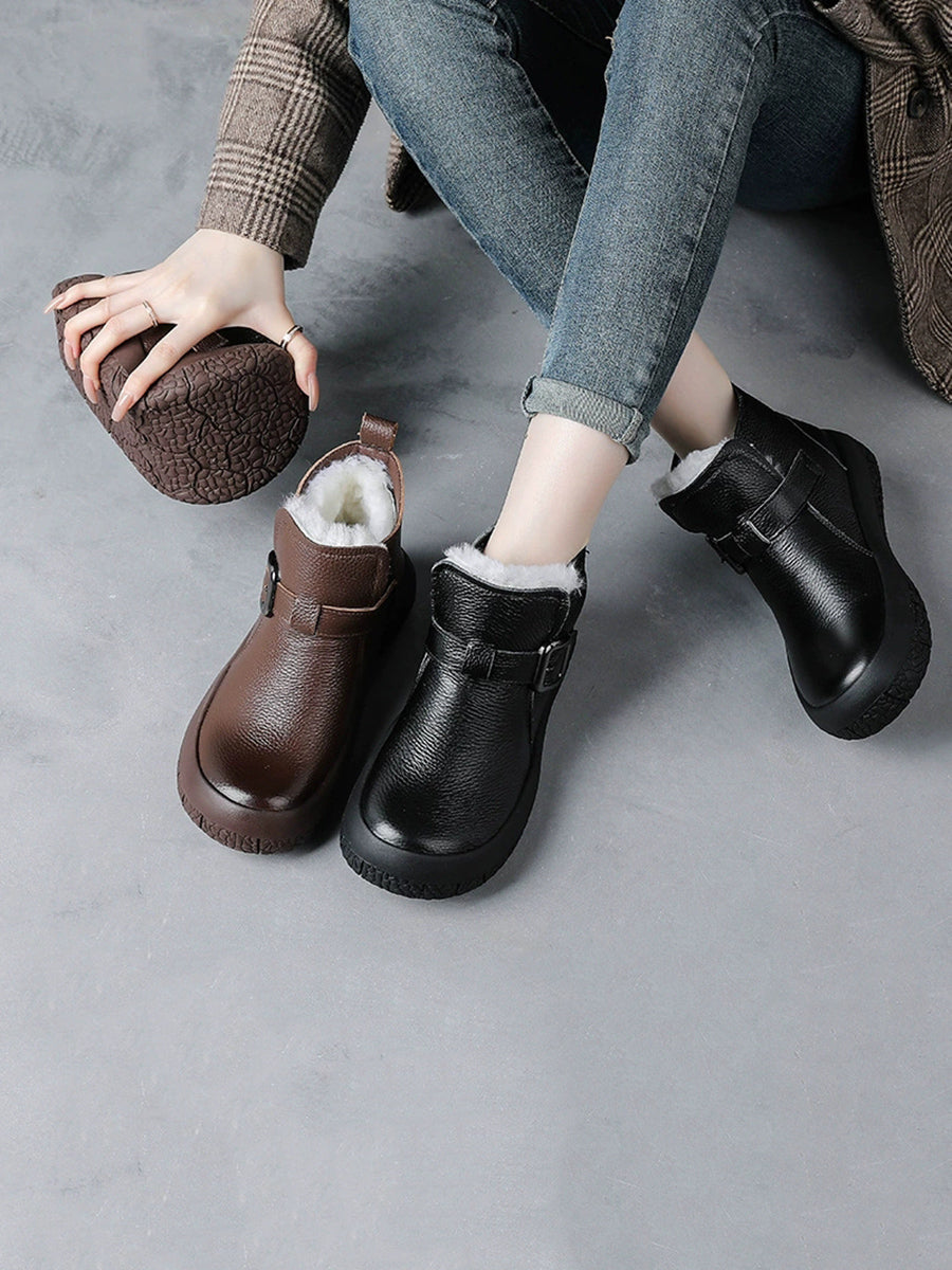 Kvinder Vinter Ægte Læder Fleeceforede Platformstøvler
