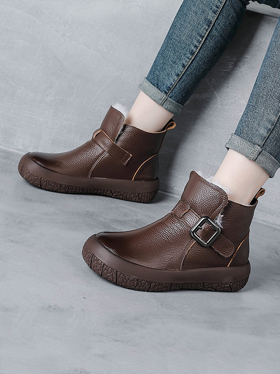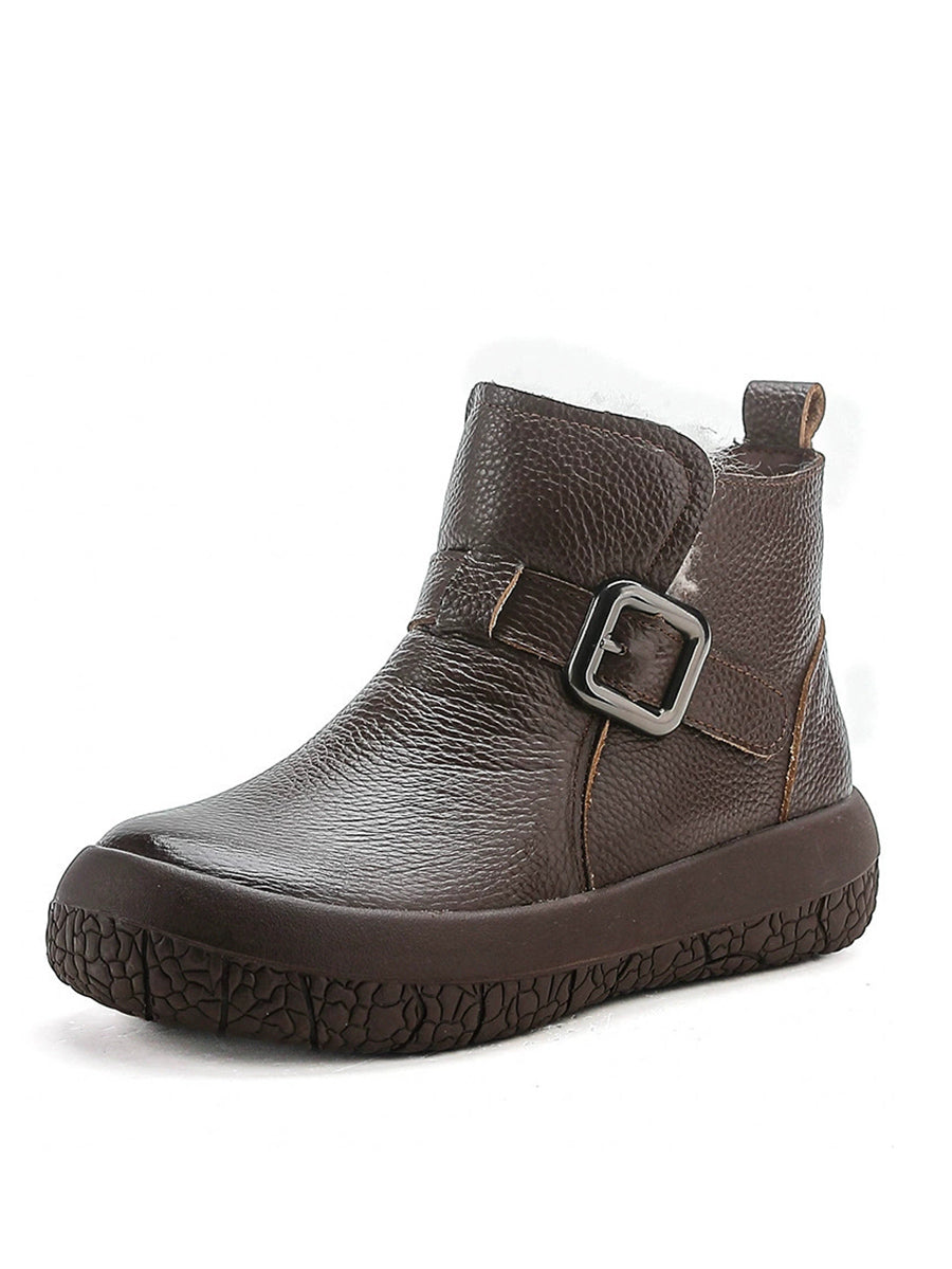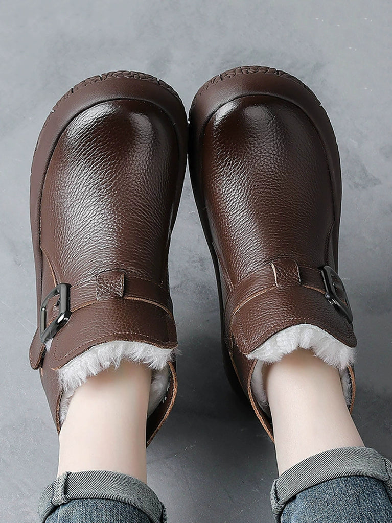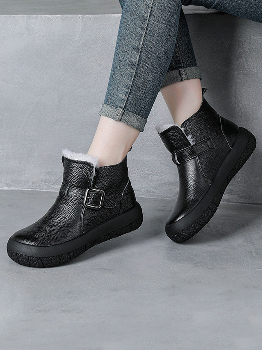 Kvinder Vinter Ægte Læder Fleeceforede Platformstøvler