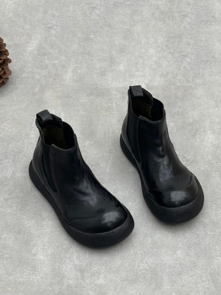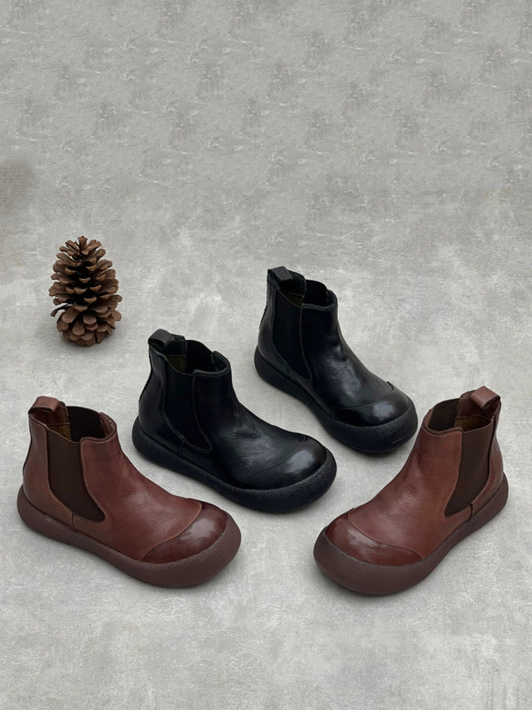 Kvinder Vintage Ægte Læder Spliced Flade Ankelstøvler