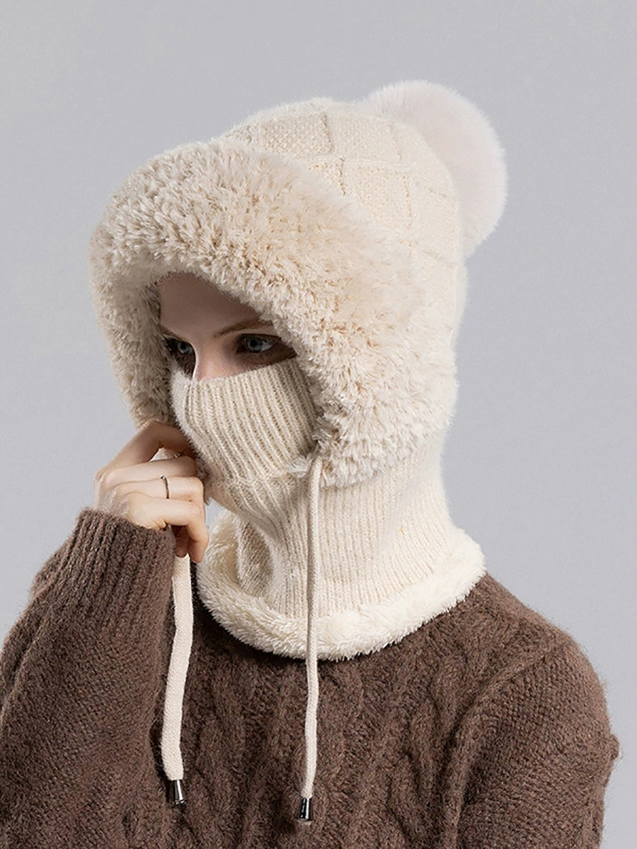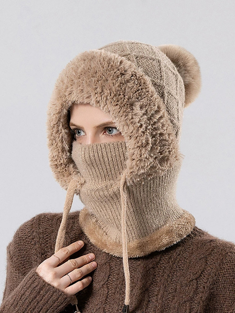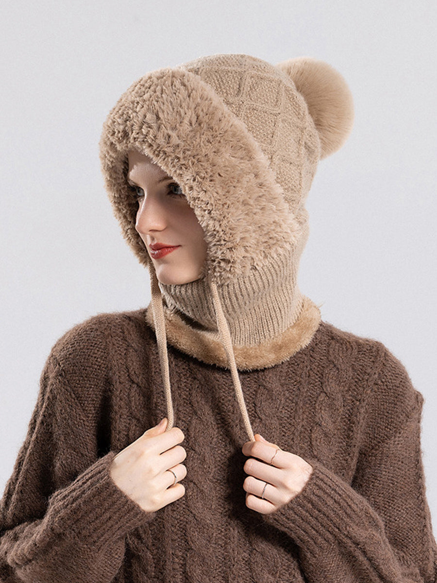 Kvinder Casual Vinterstrikket Plys Tørklæde + Hue