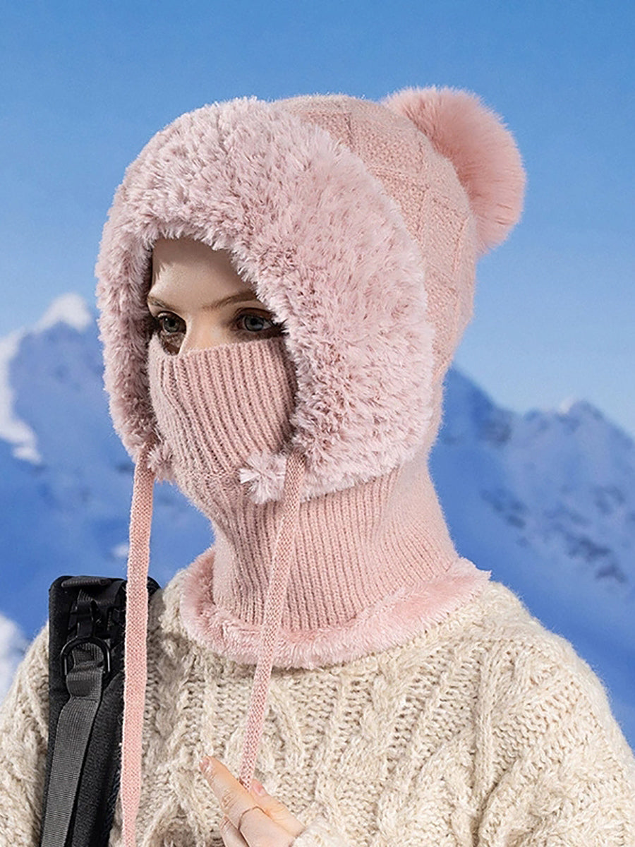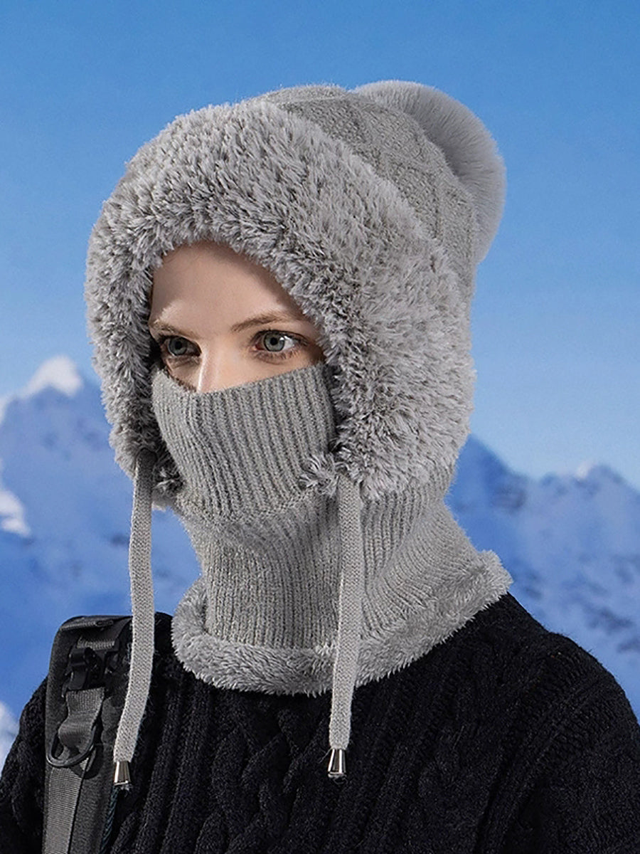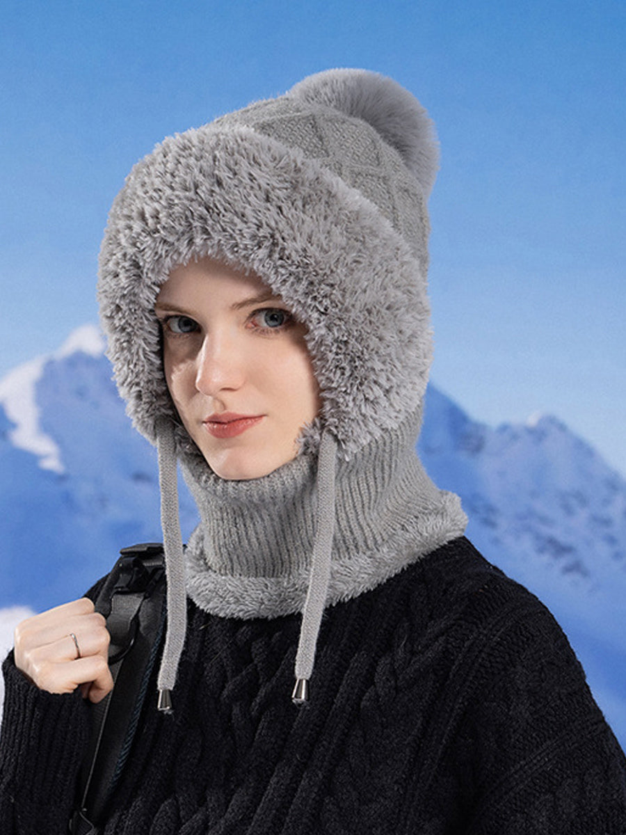 Kvinder Casual Vinterstrikket Plys Tørklæde + Hue