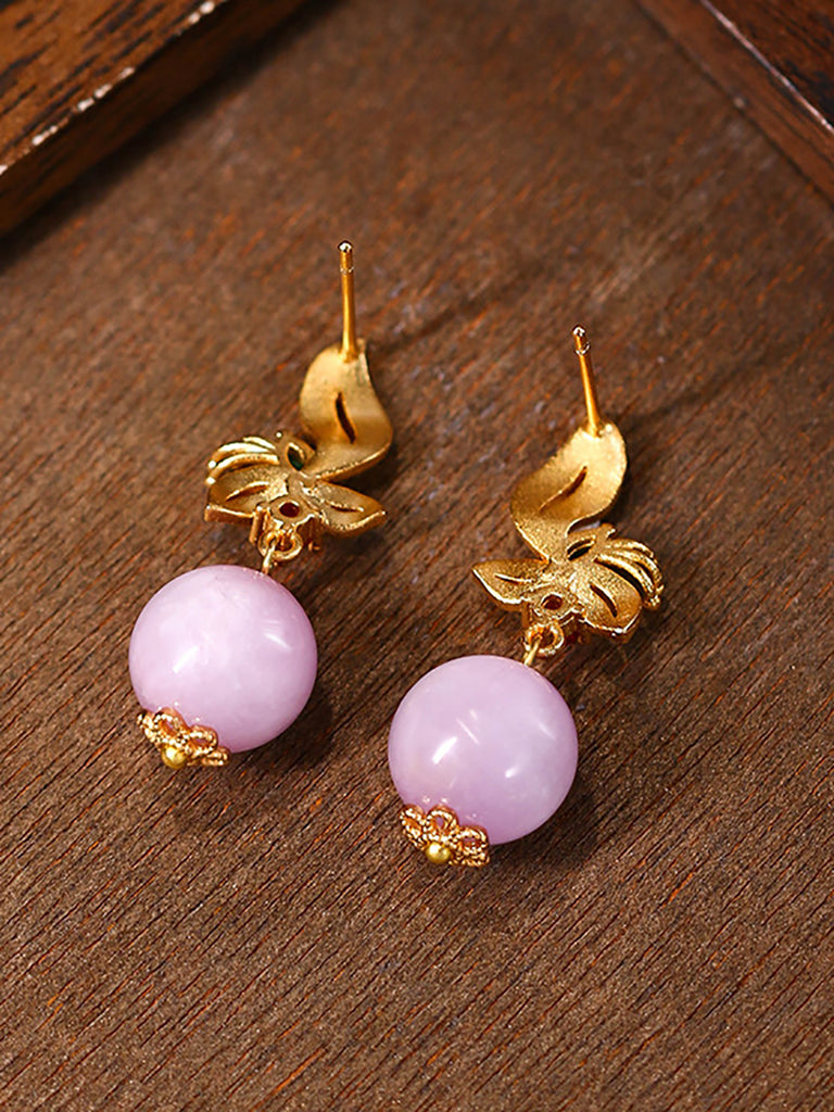Etniske Kvinder 24K Forgyldte Jade Øreringe