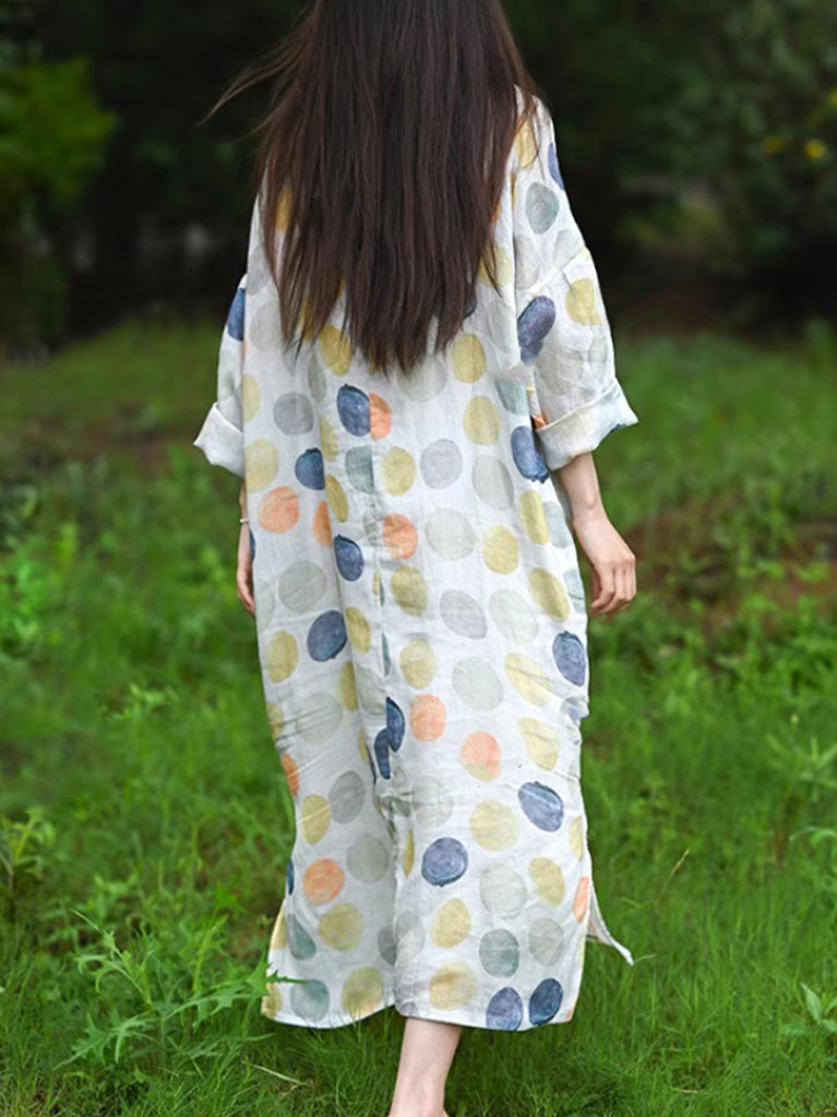 Kvinder Sommer Etnisk Farverig Prikket 100% Ramie Kjole