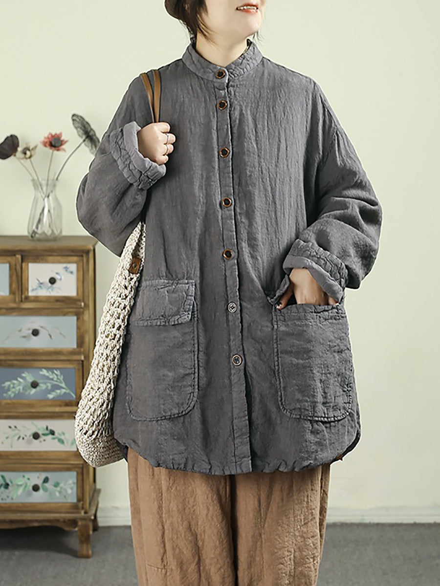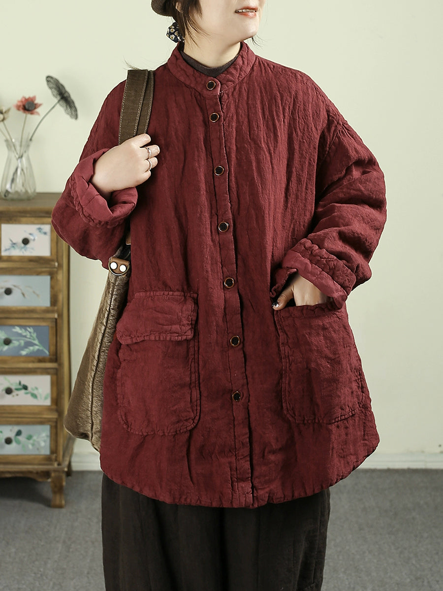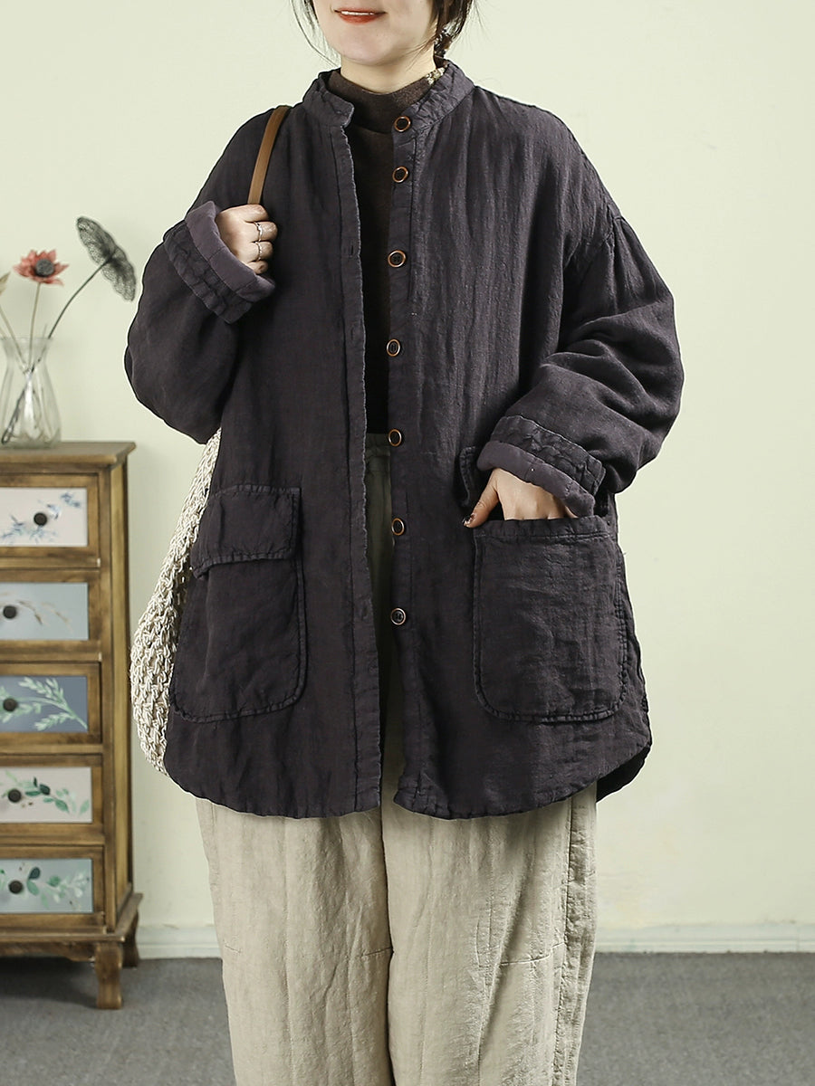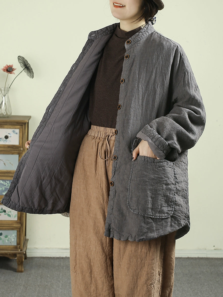 Kvinders vinterfrakke i etnisk, ren farve, 100% linned