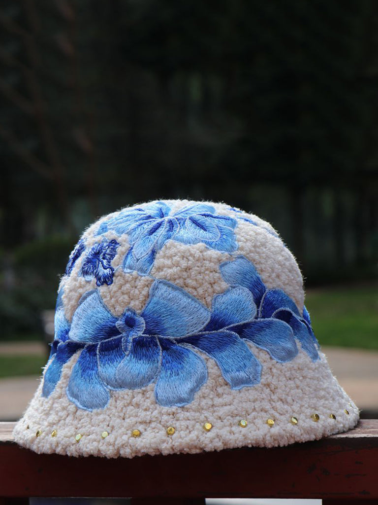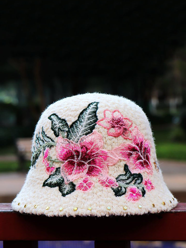 Kvinder Kunstnerisk Vinter Blomsterbroderi Fleecehue
