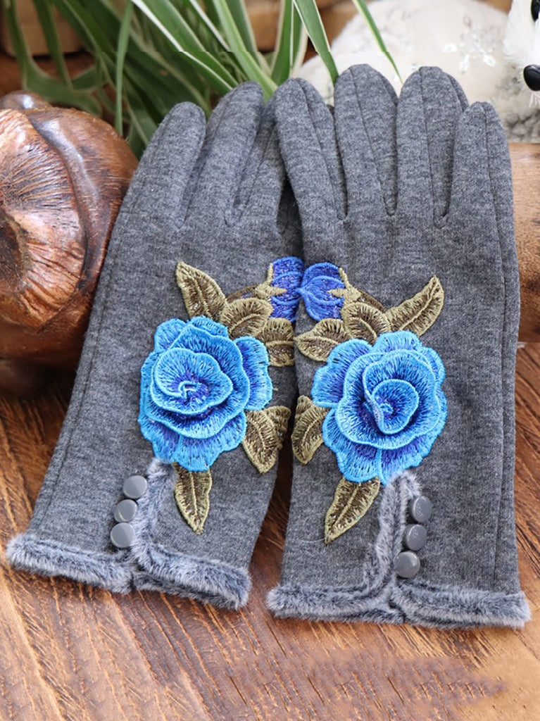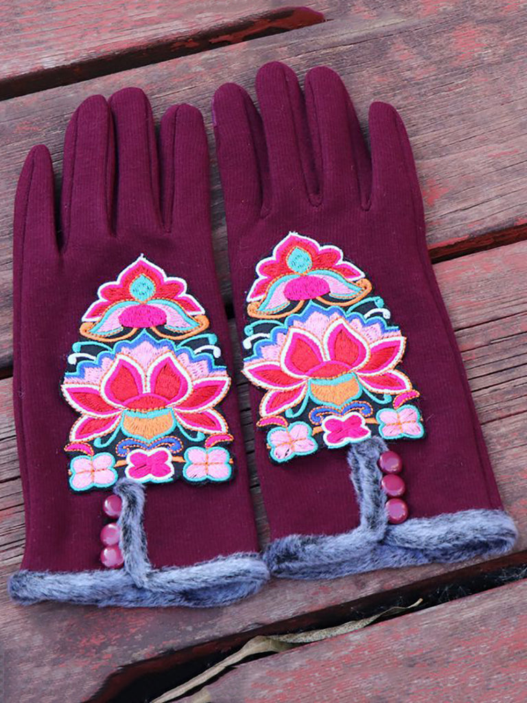 Kvinder Etniske Vinterbroderi Fleeceforede Handsker