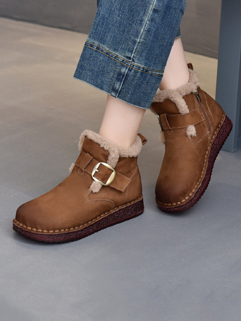 Dame Vintage Ren Farve Fleeceforede Ankelstøvler