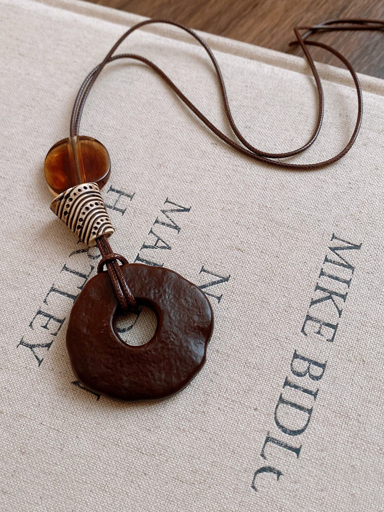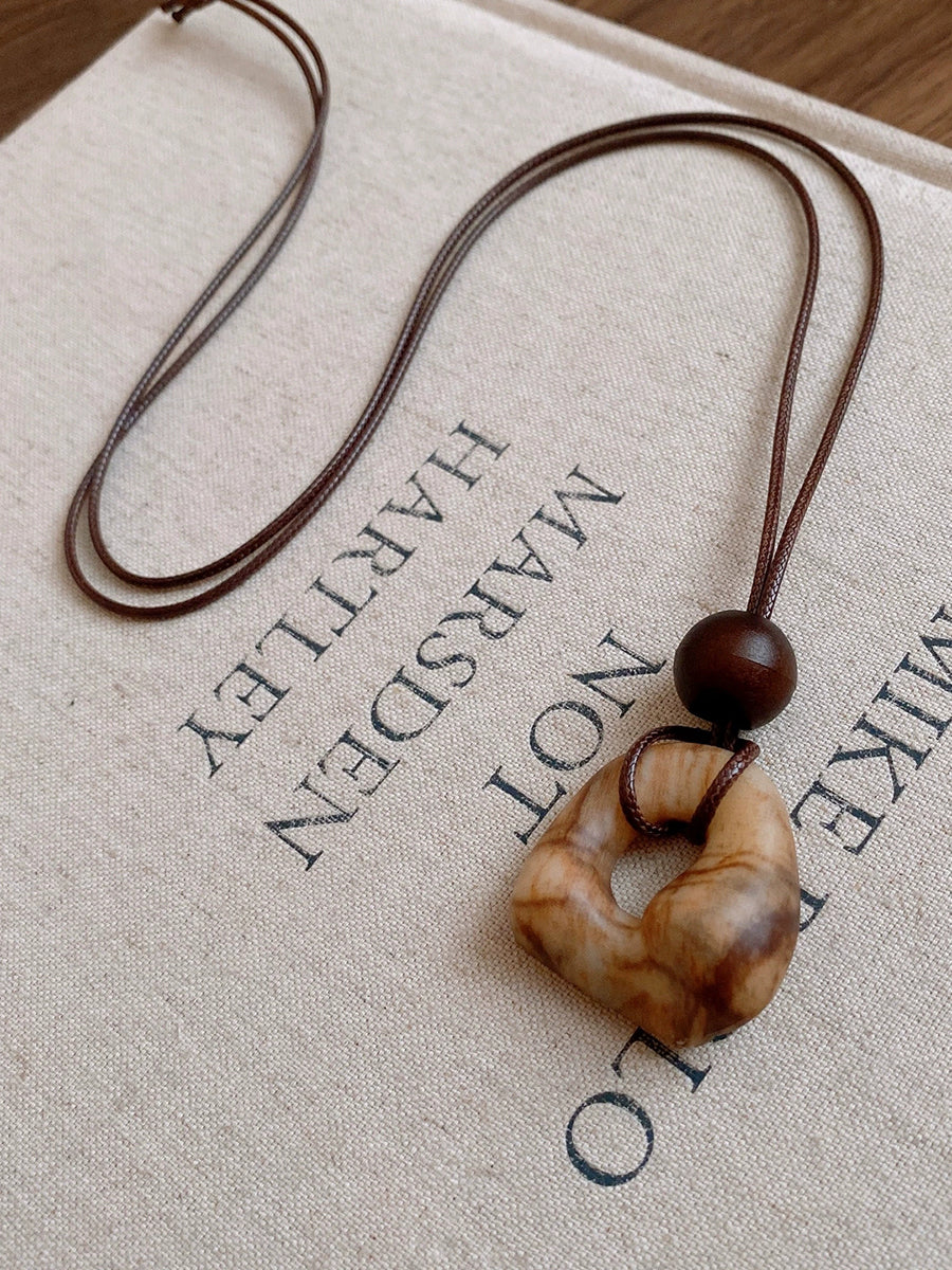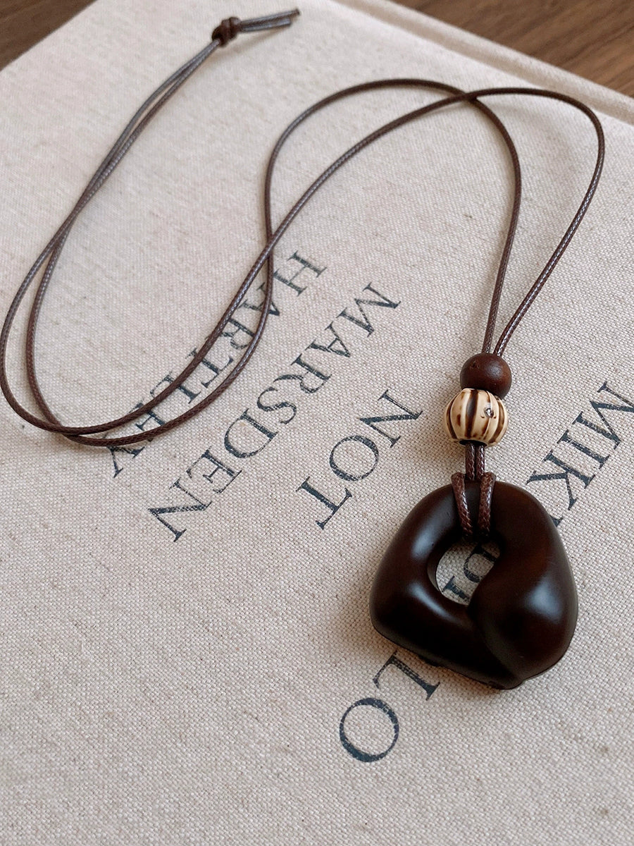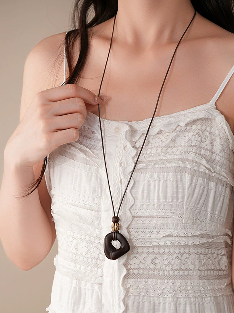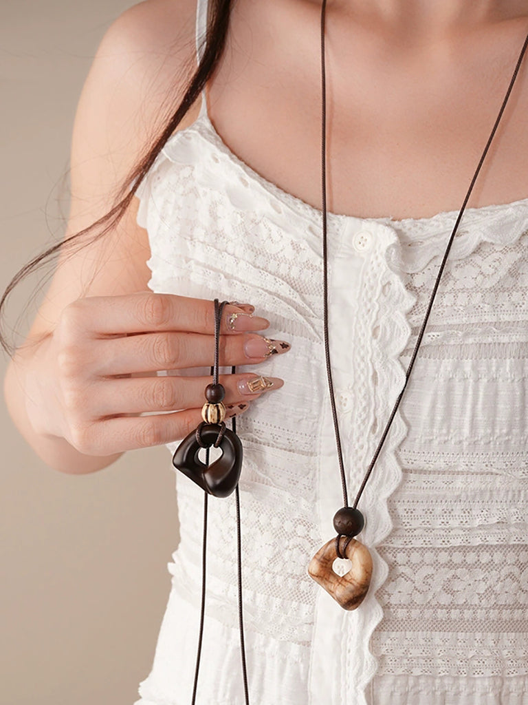 Halskæde med uregelmæssig geometrisk træperle og harpiksvedhæng
