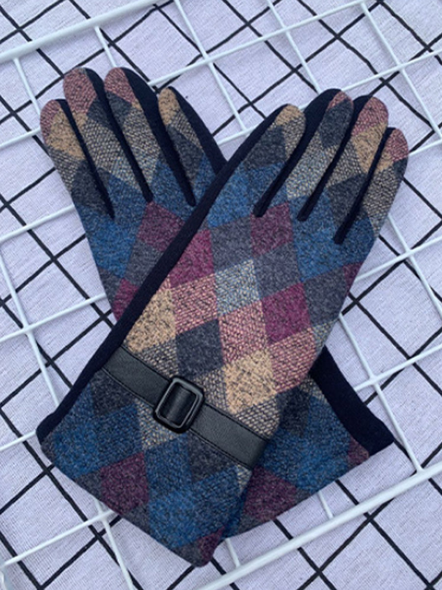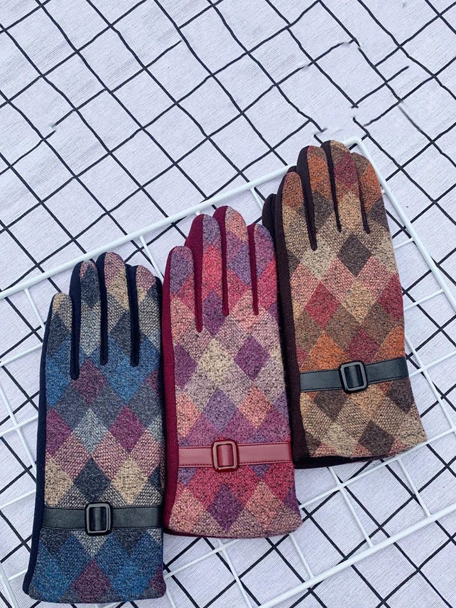 Kvinder Etniske Plaid Varme Cykelhandsker