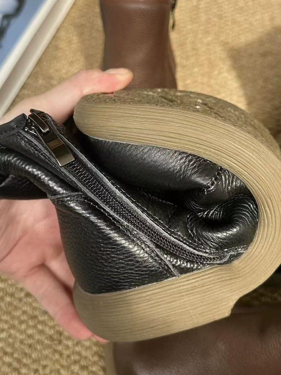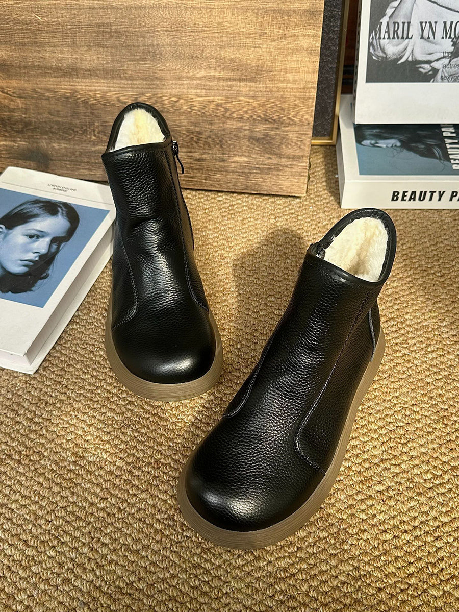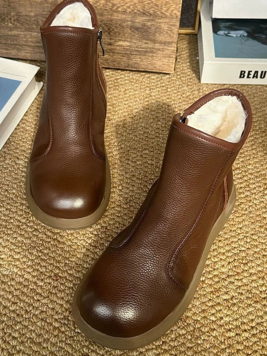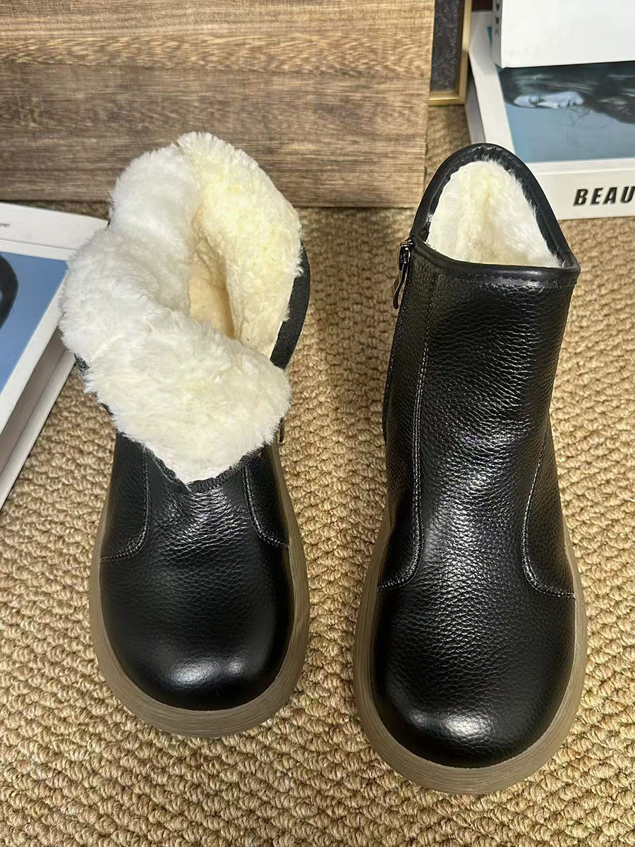 Kvinders vinterstøvler med fleecefor i ægte læder