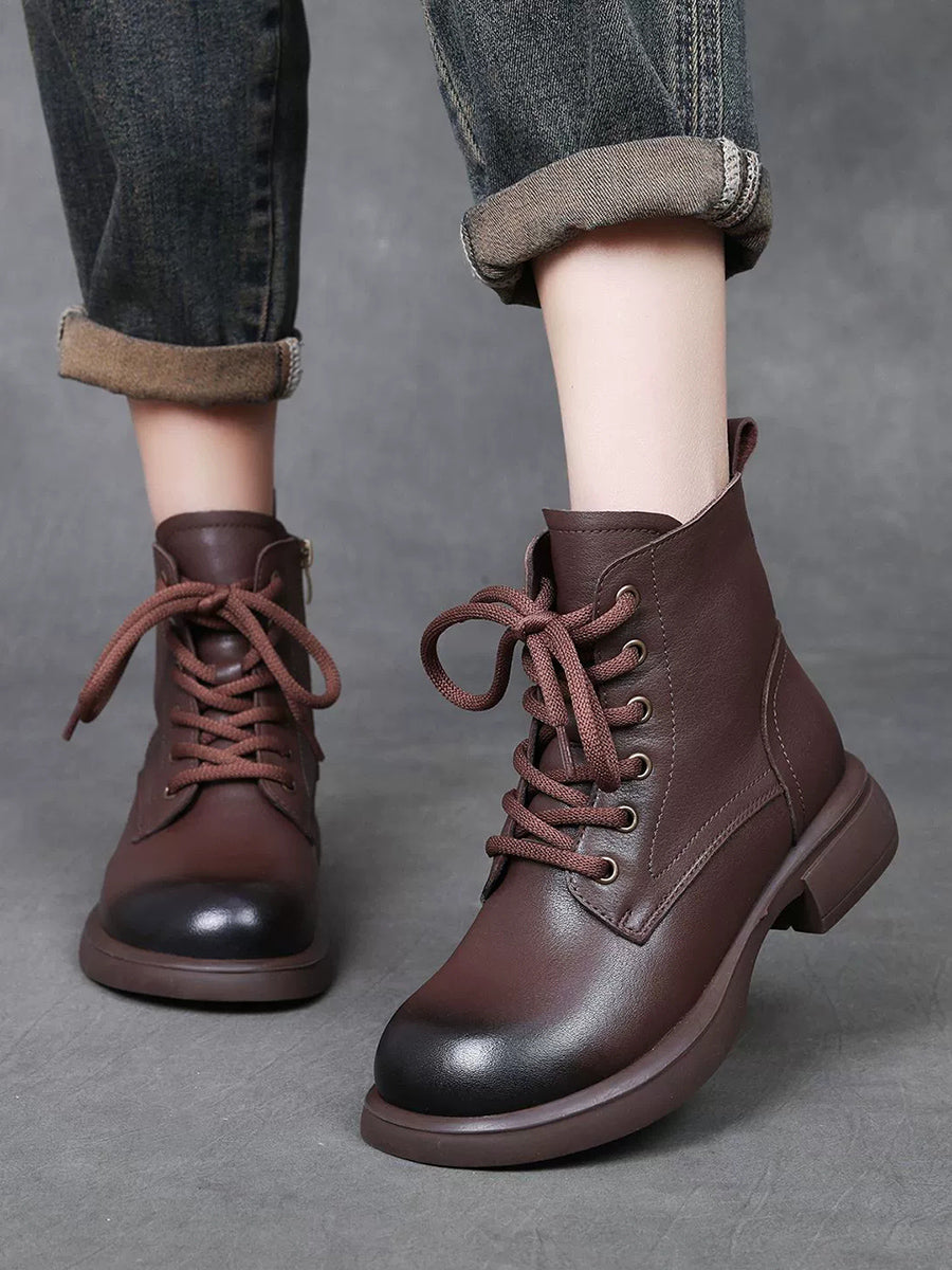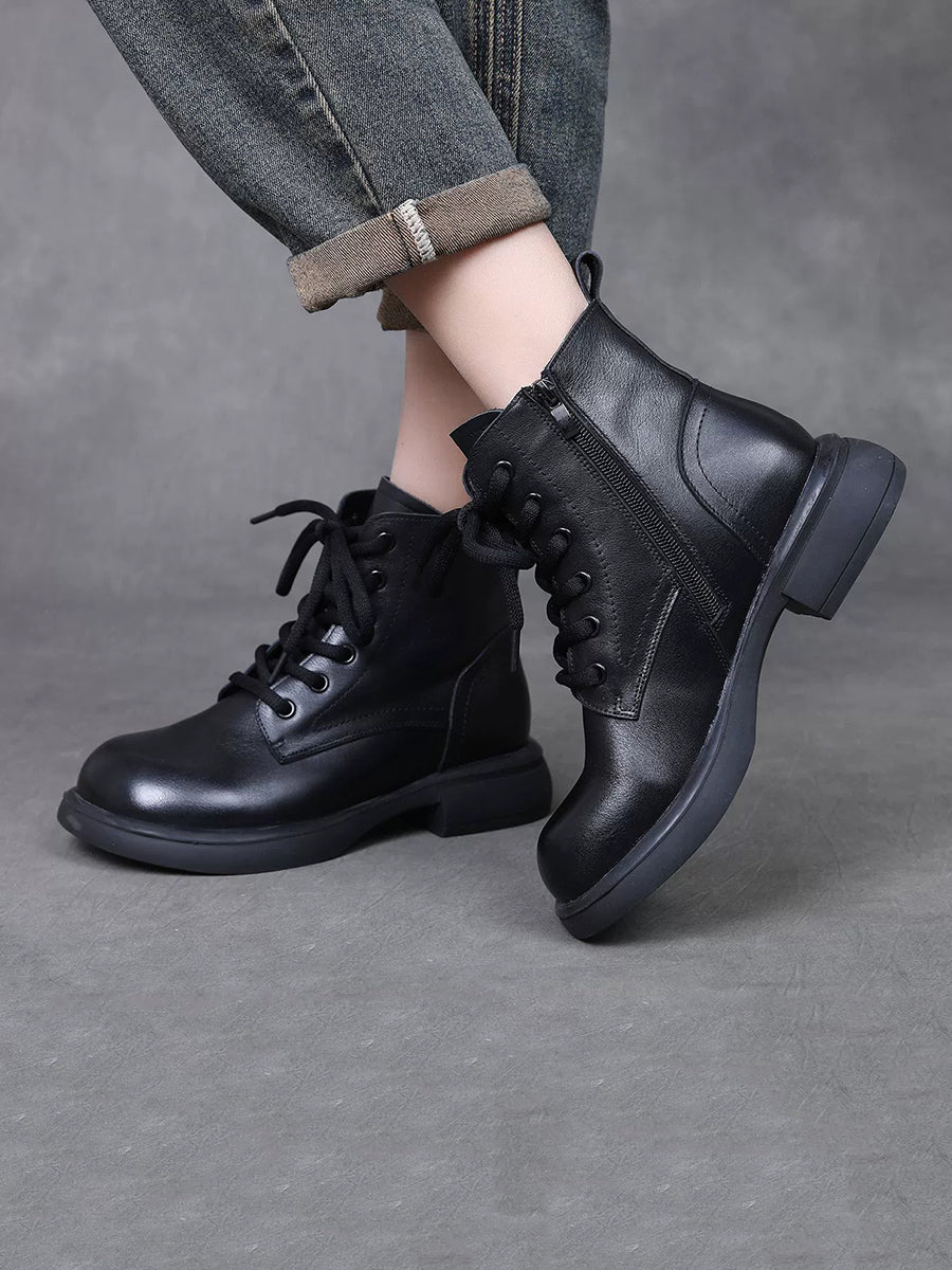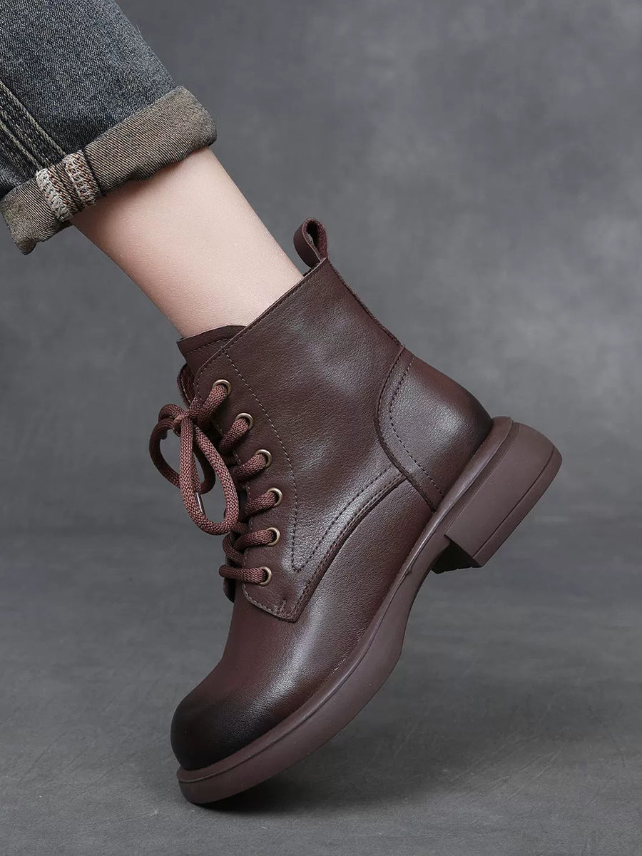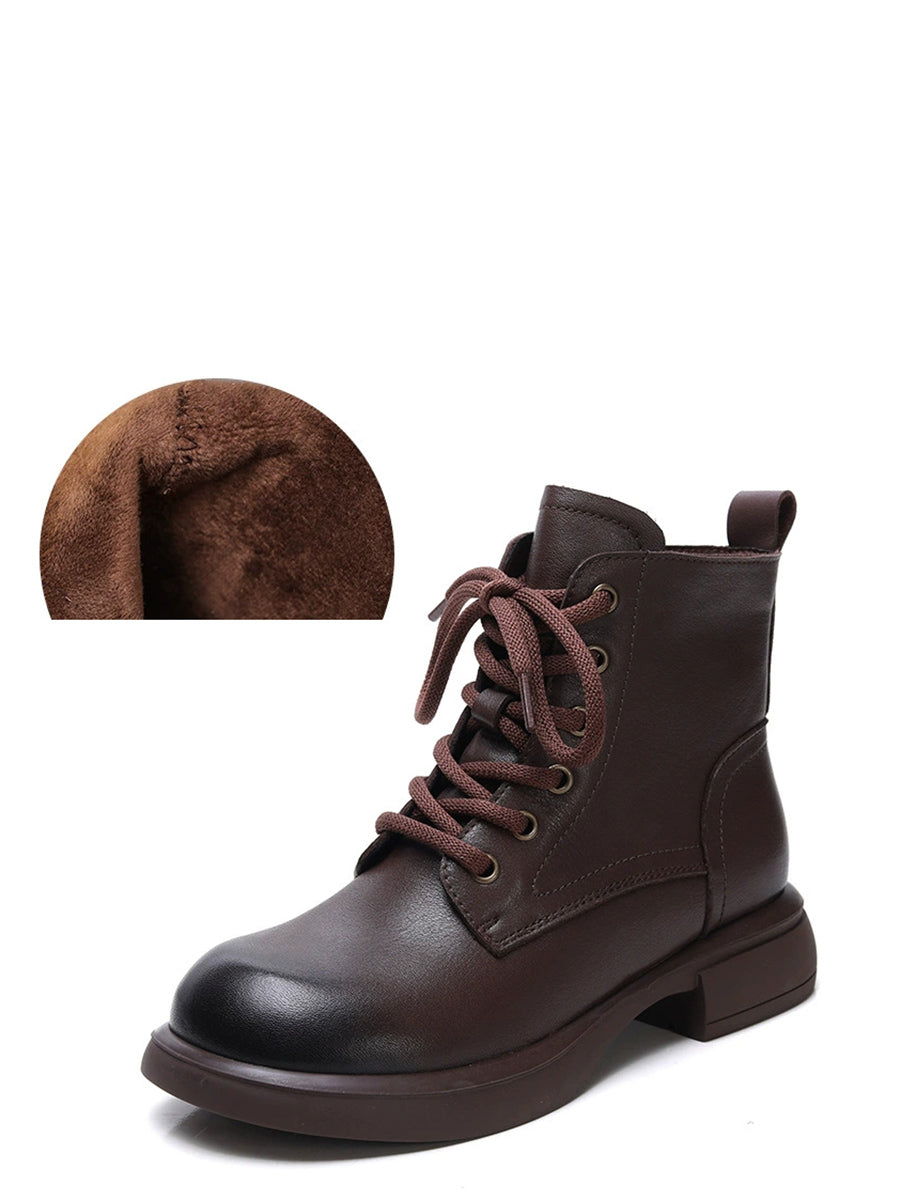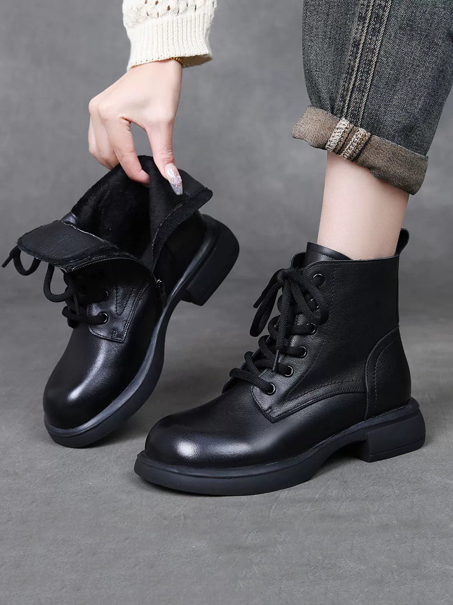 Kvinder Vinter Ægte Læder Lavhælede Martin Støvler