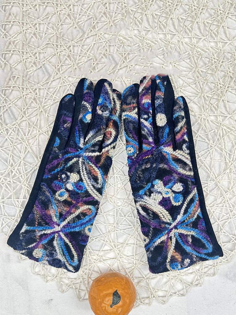 Kvinder Etniske Blomster Strikkede Varme Cykelhandsker