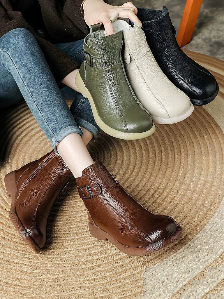 Kvinder Vinter Vintage Ren Farve Rem Ankelstøvler