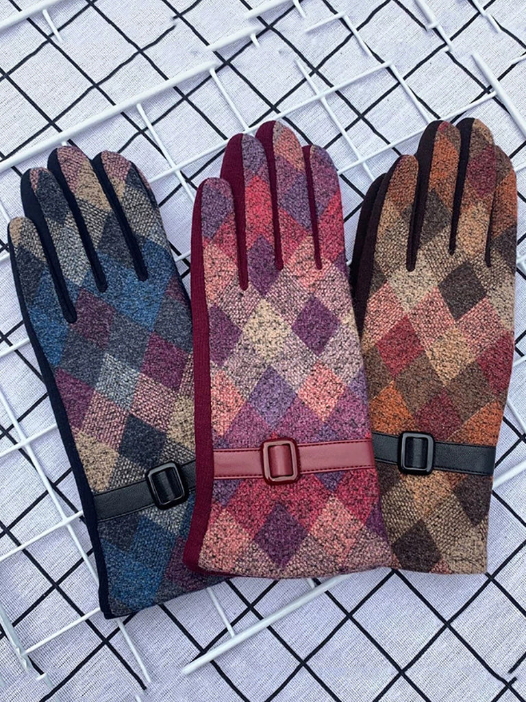 Kvinder Etniske Plaid Varme Cykelhandsker