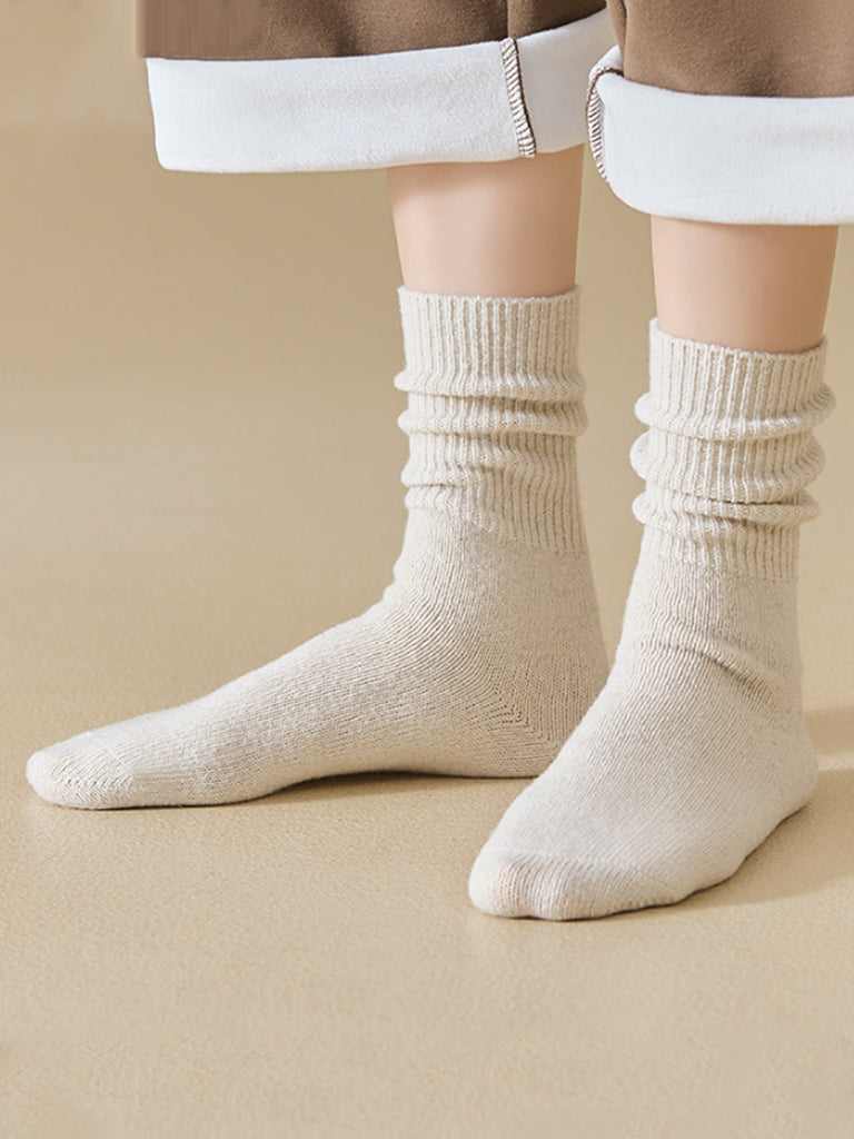 5 par dame vintersokker med mellemhøj hæl og farveblok