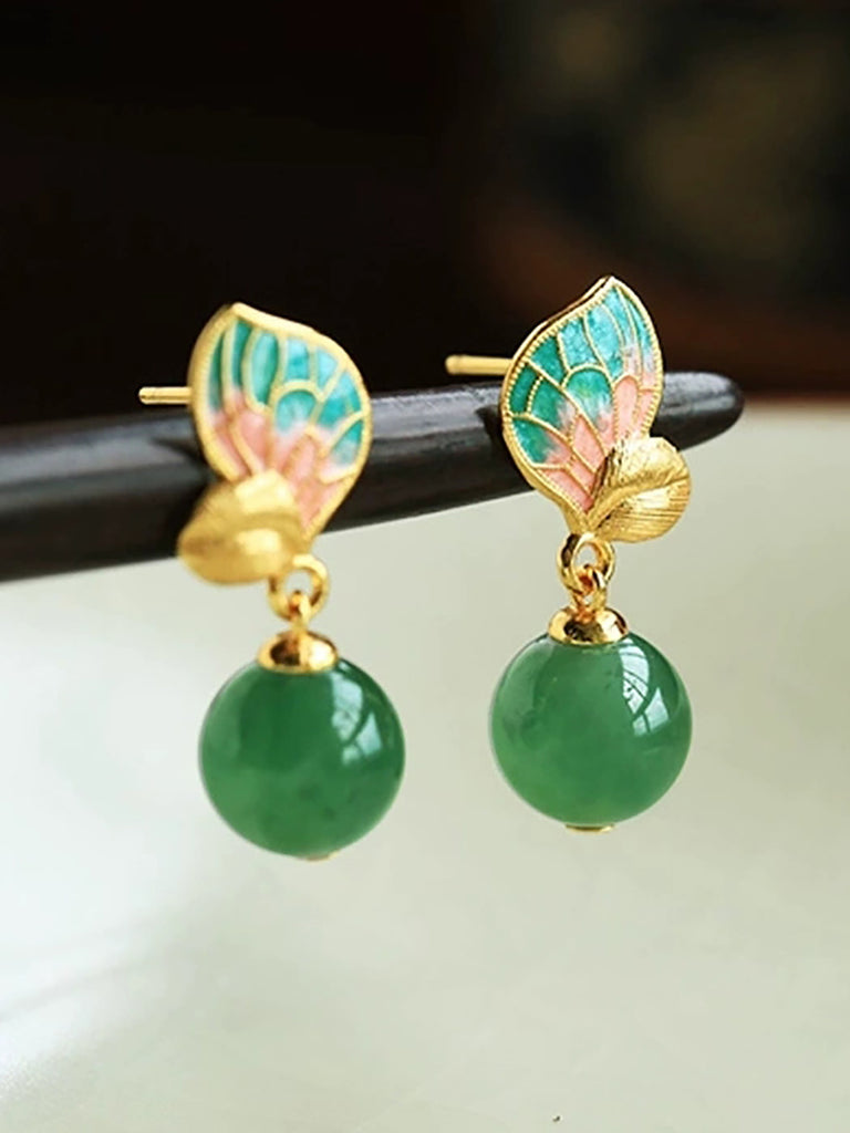 Kvinder Vintage Cloisonne Jade Kobber Øreringe