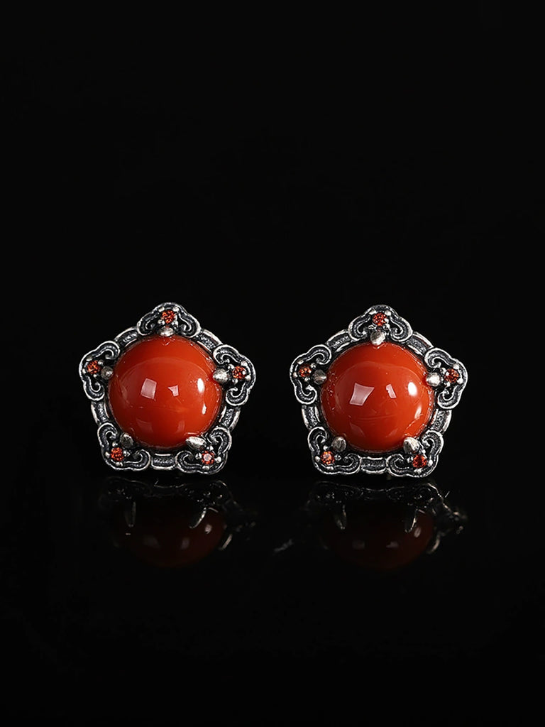 Kvinder Vintage S925Sølv Rød Agat Øreringe