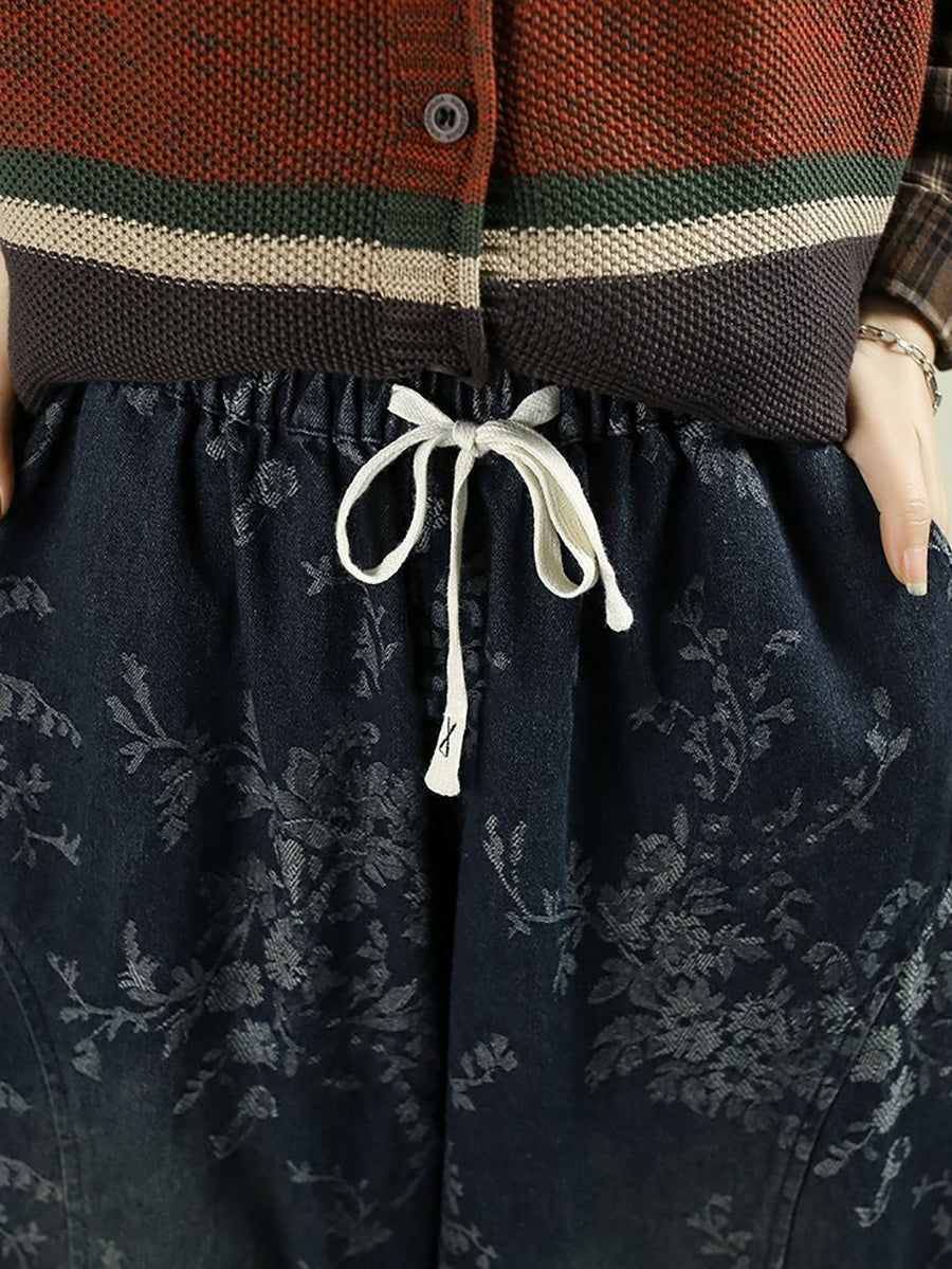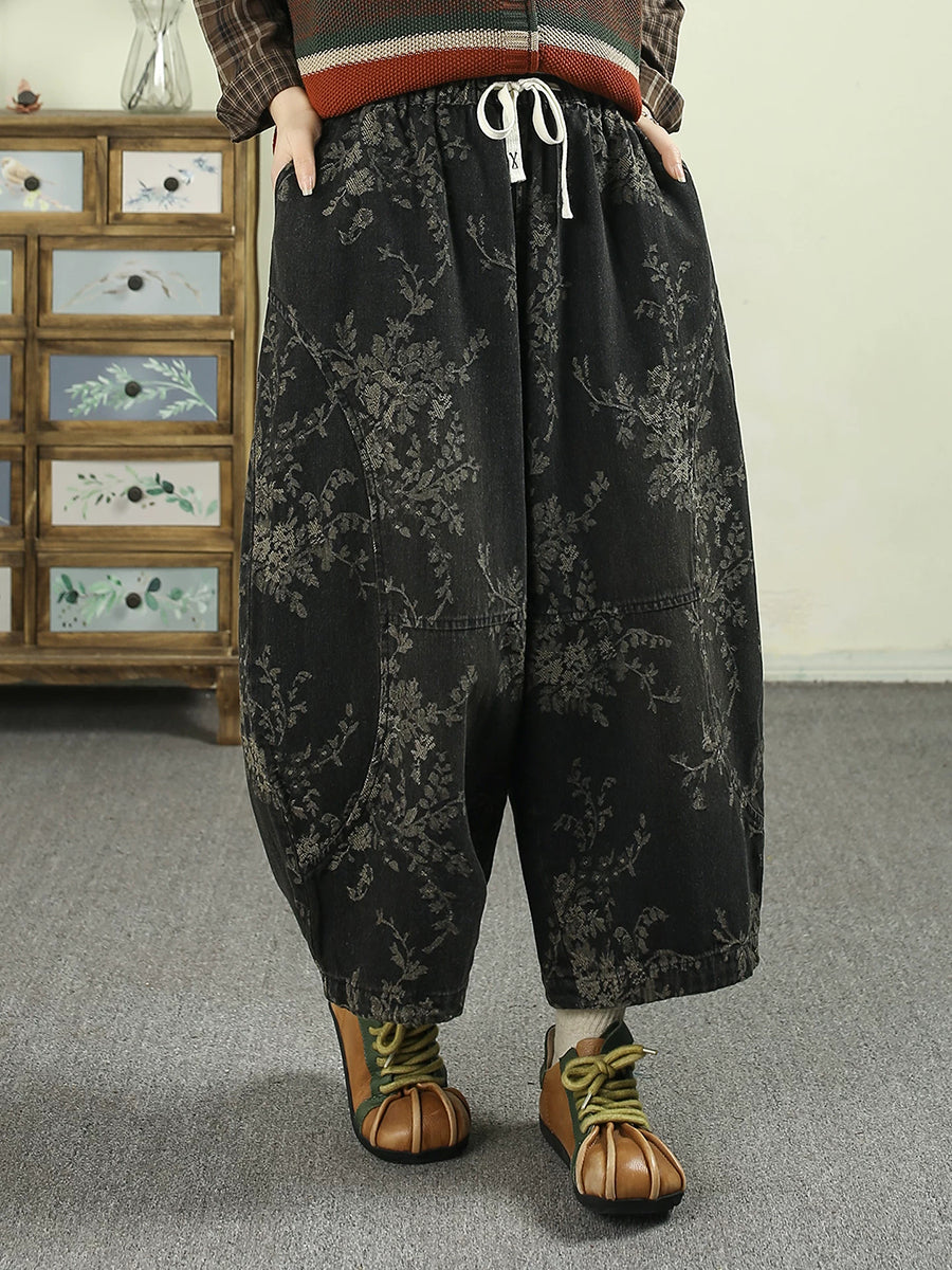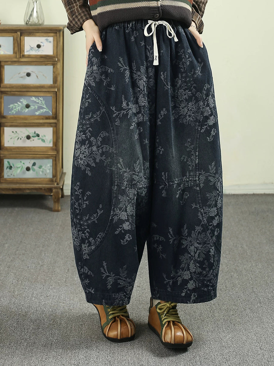Kvinder Forår Retro Blomster Denim Harembukser