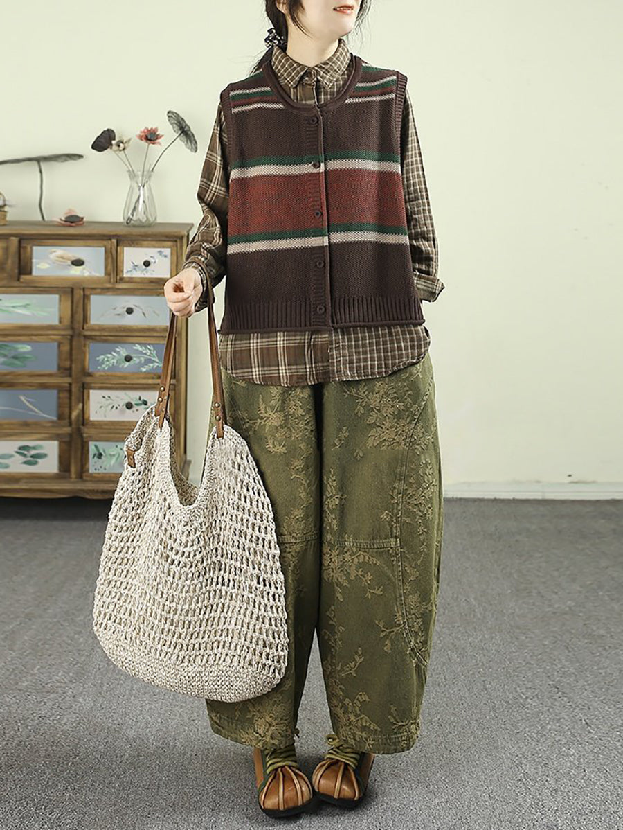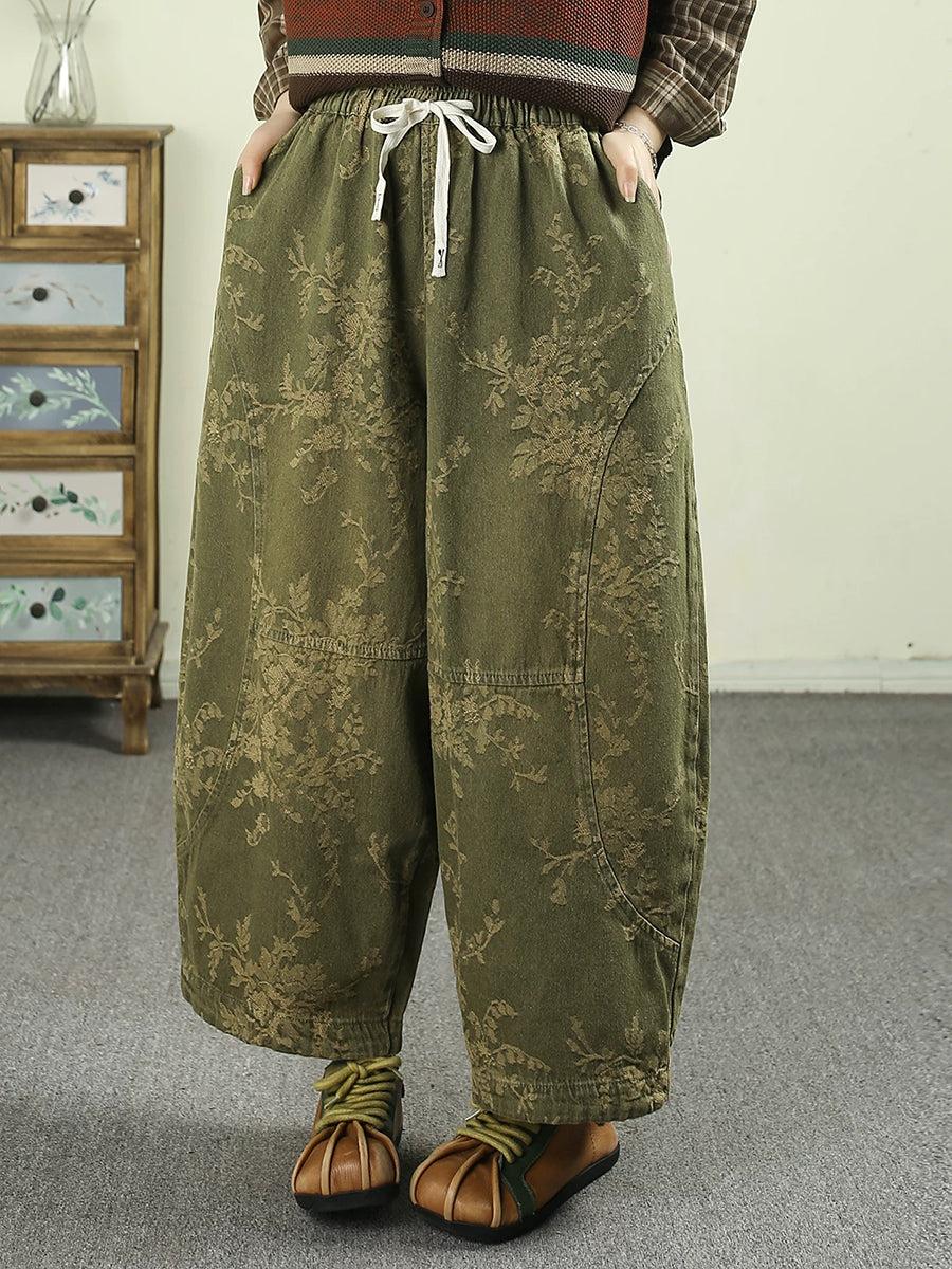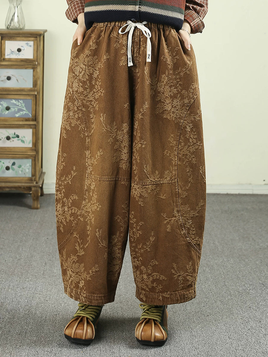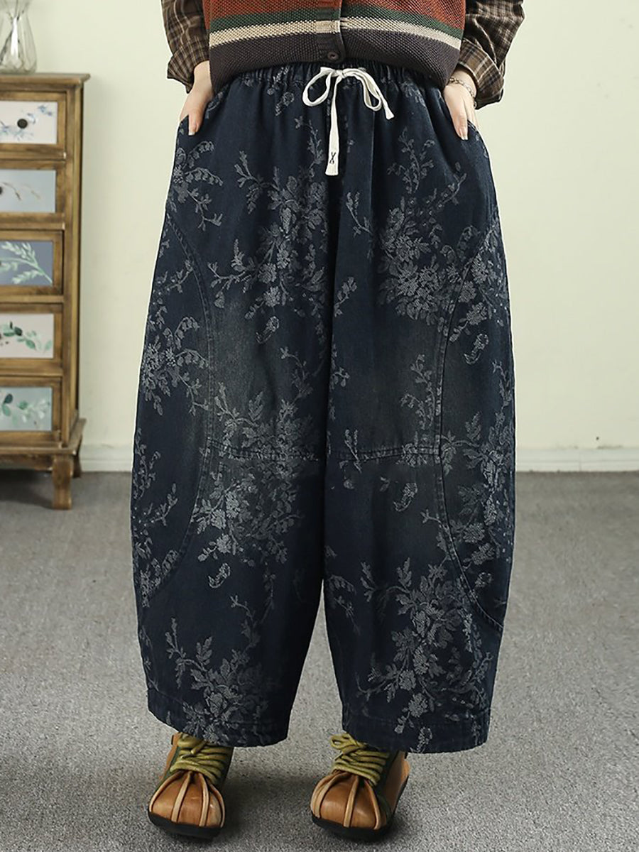 Kvinder Forår Retro Blomster Denim Harembukser