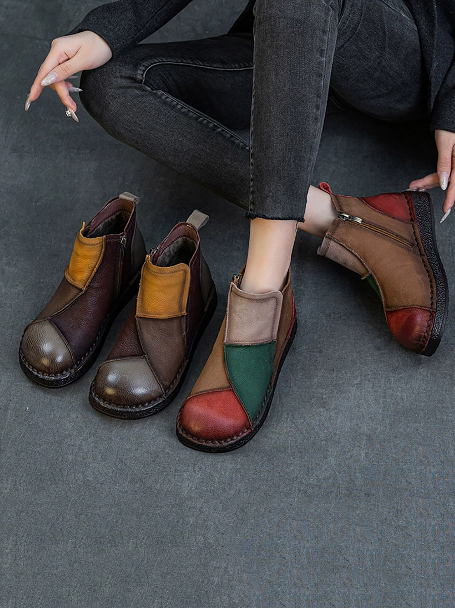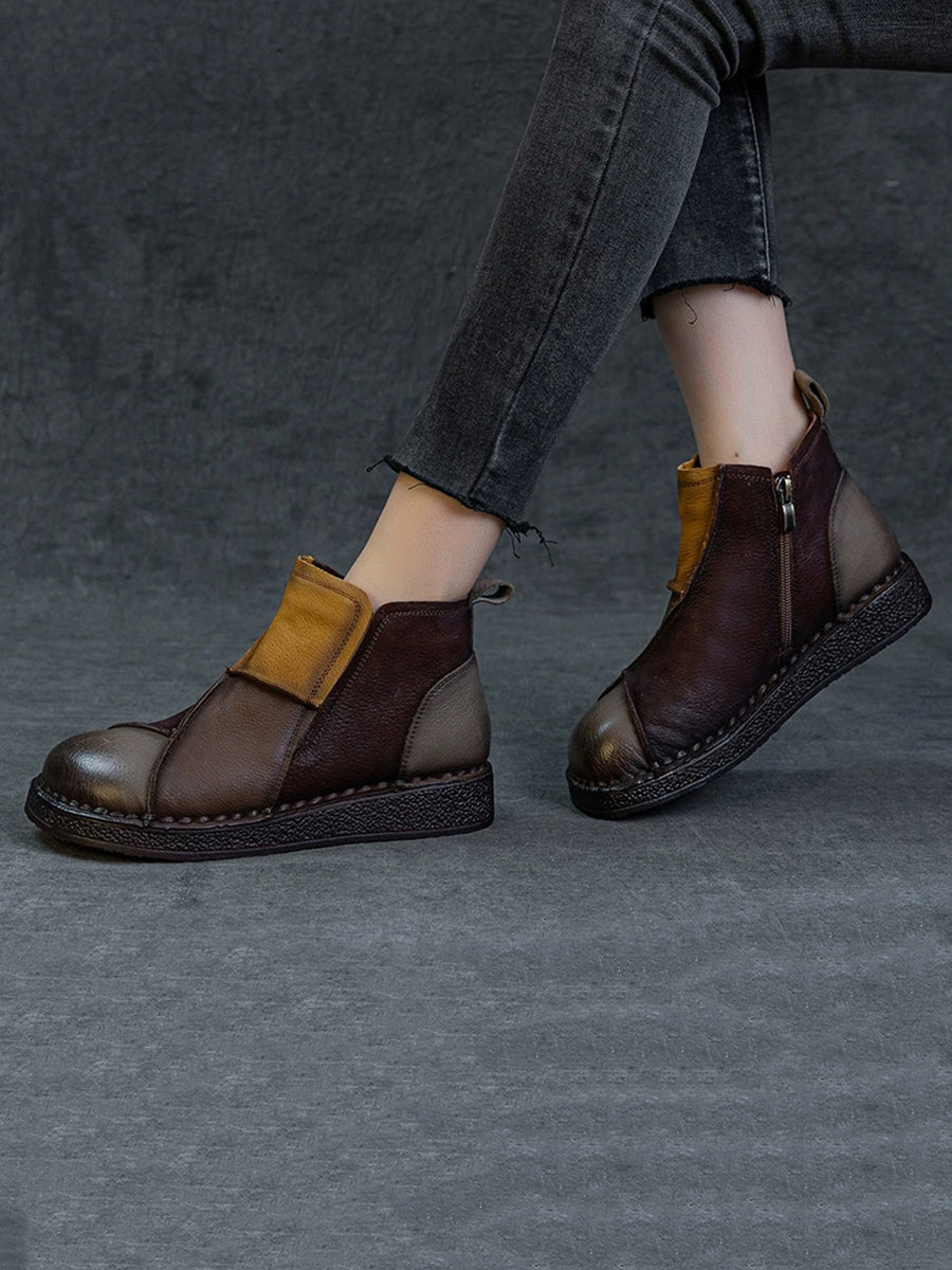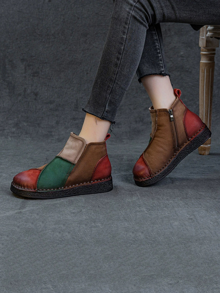 Kvinder Vinter Colorblock Ankelstøvler i ægte læder
