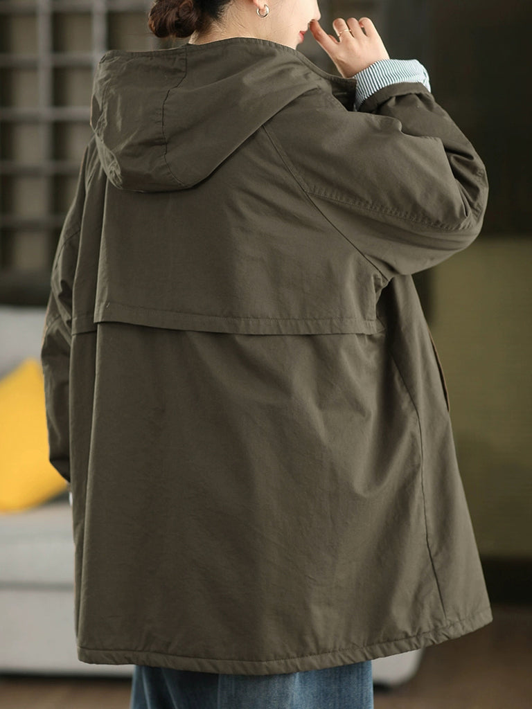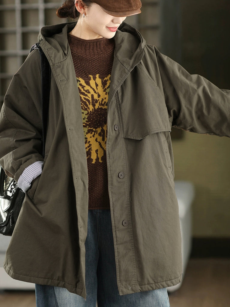 Kvinders vinterfrakke med hætte i ren farve, 100% bomuld
