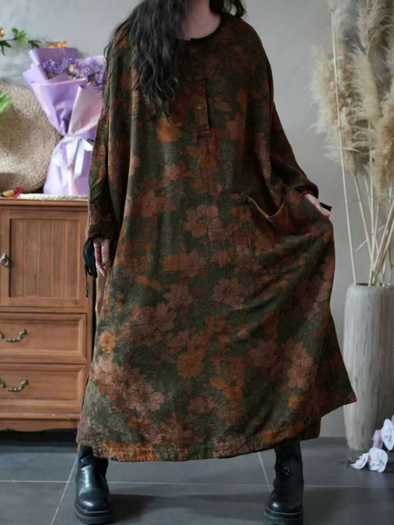 Kvinder Efterår Vintage Blomster O-hals Kjole