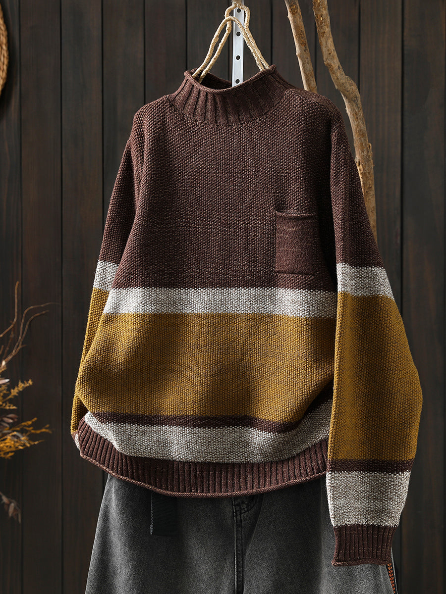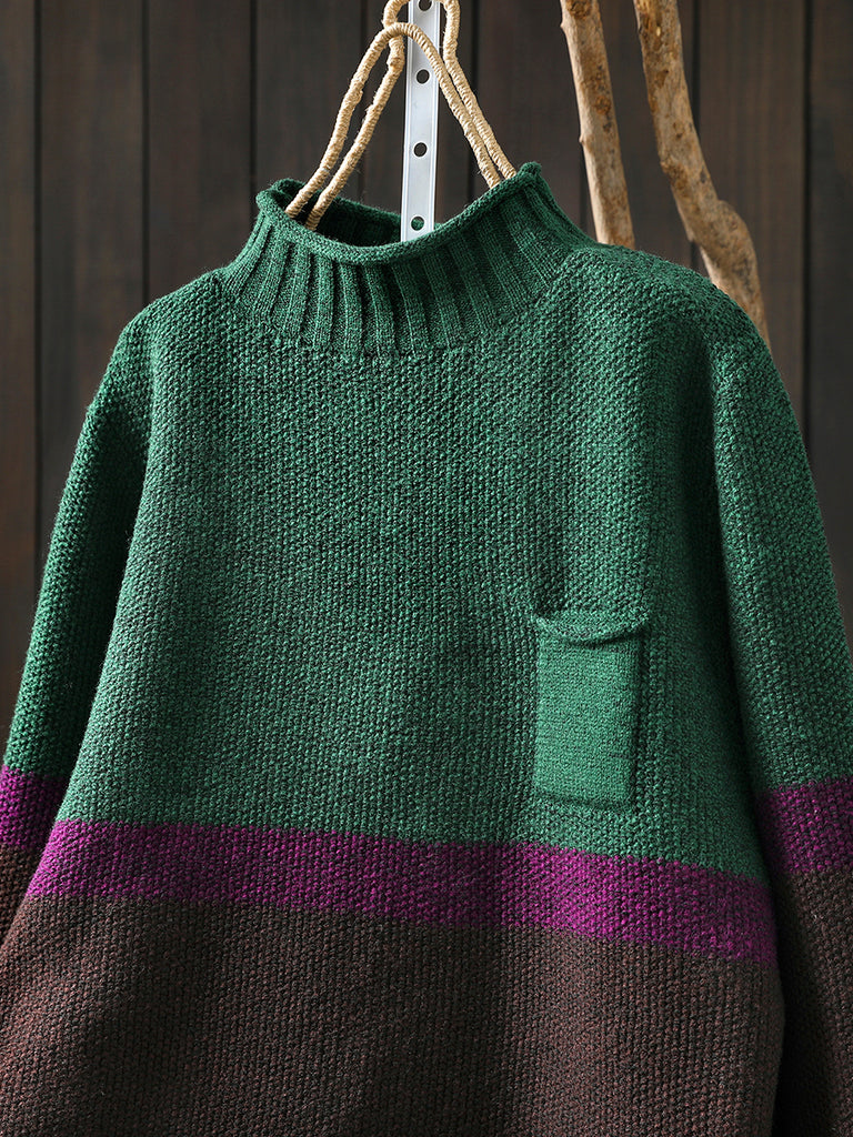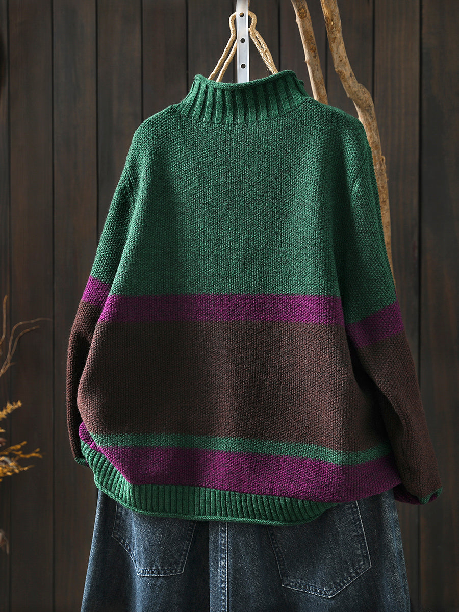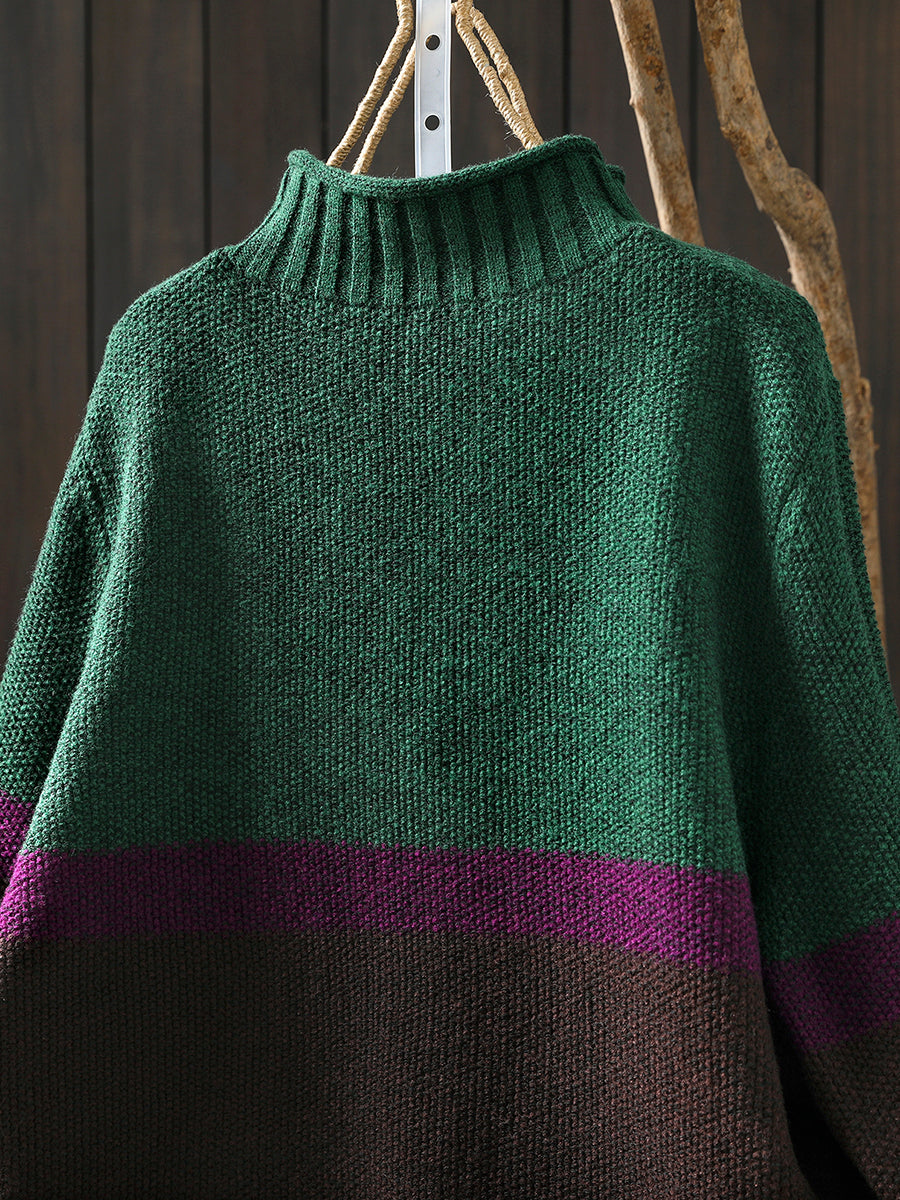 Kunstnerisk strikket sweater med halv rullekrave til kvinder efterår
