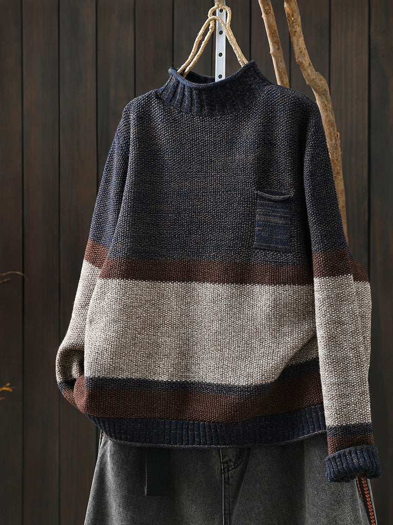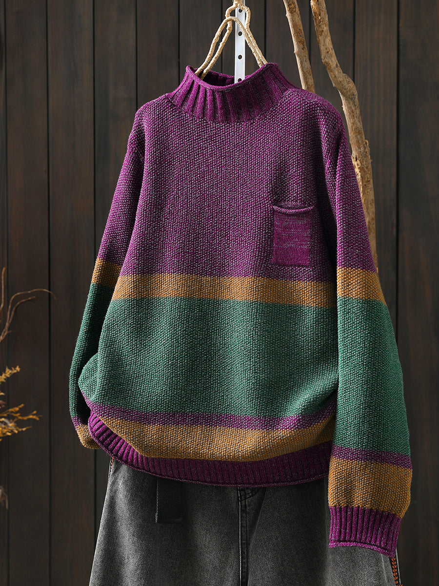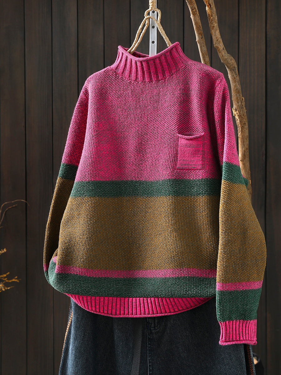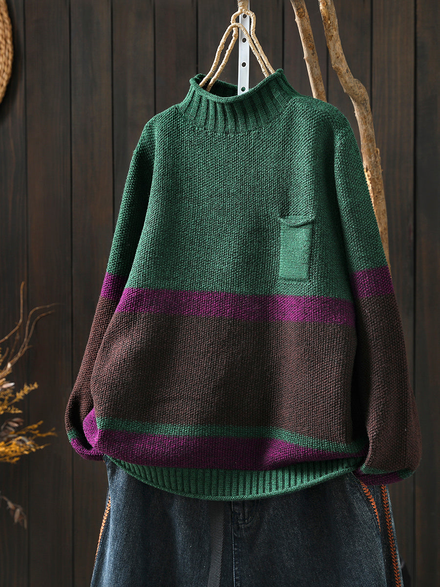 Kunstnerisk strikket sweater med halv rullekrave til kvinder efterår