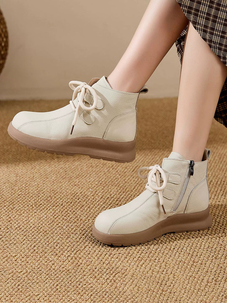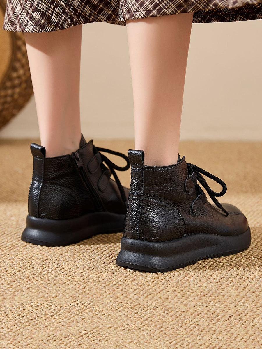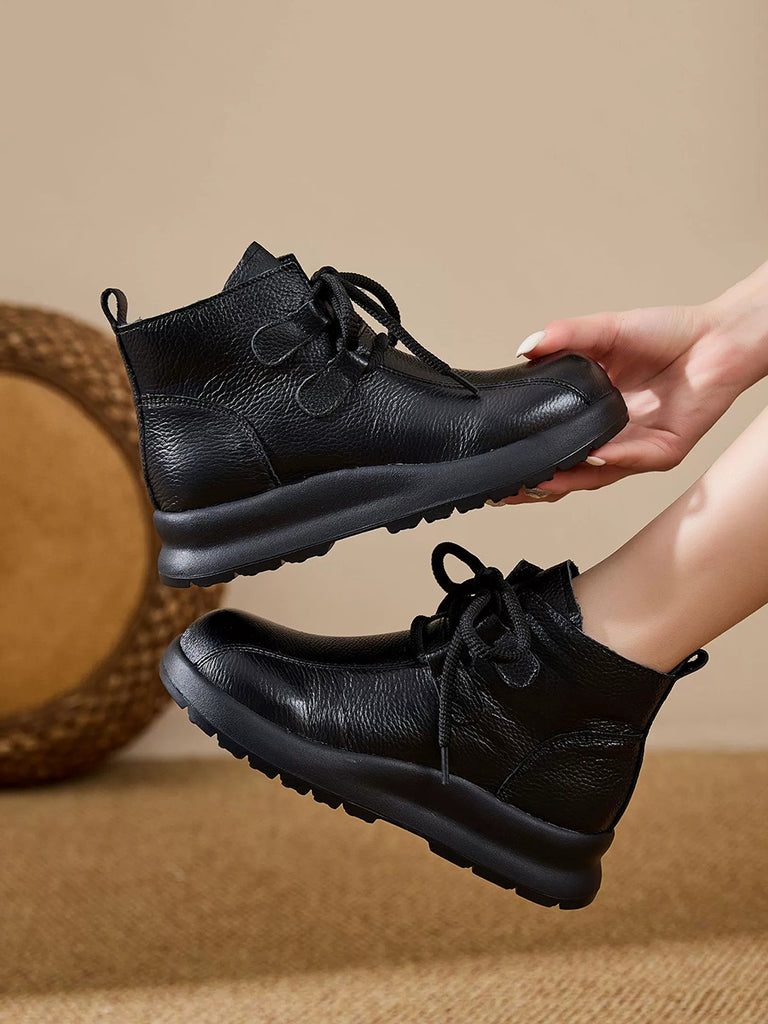 Kvinders afslappede vinterankelstøvler i ægte læder