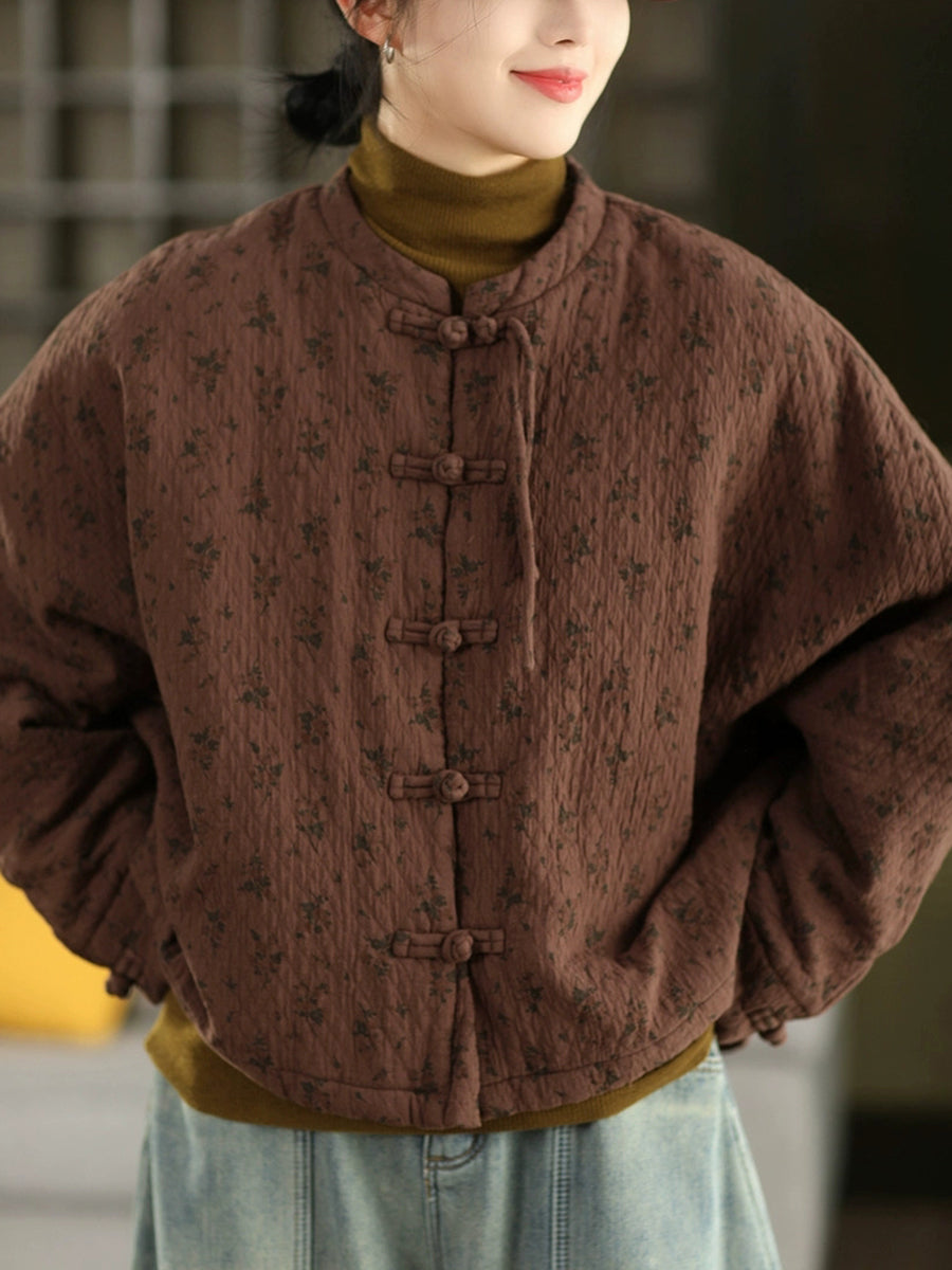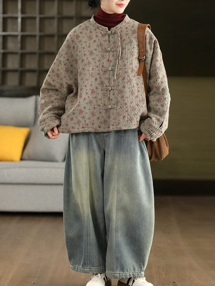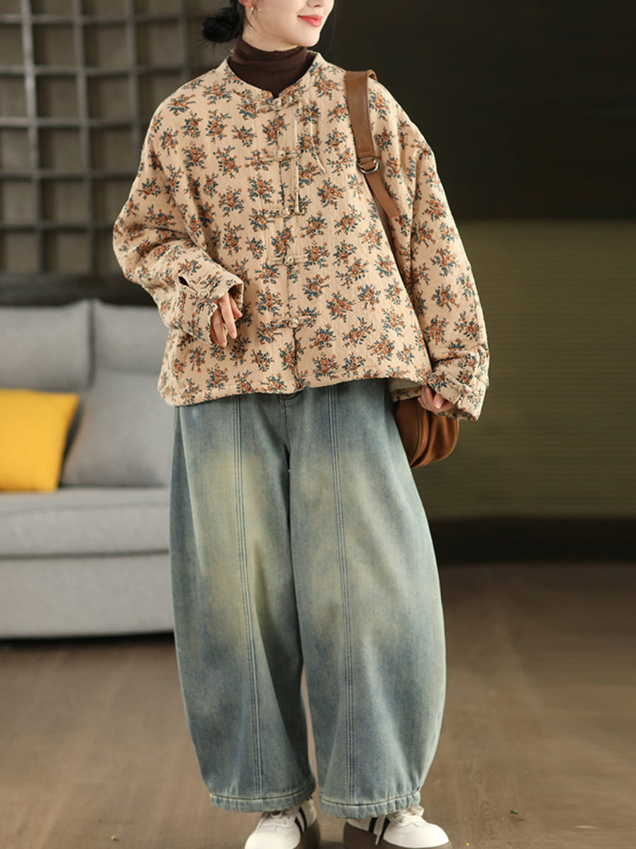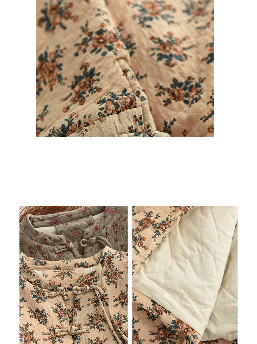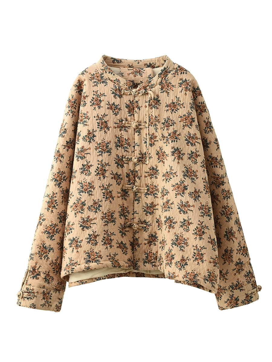 Kvinder Vinter Etnisk Blomster Stand Collar Polstret Frakke