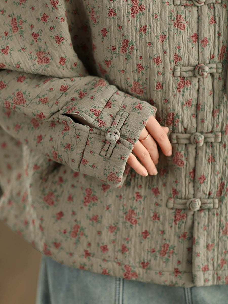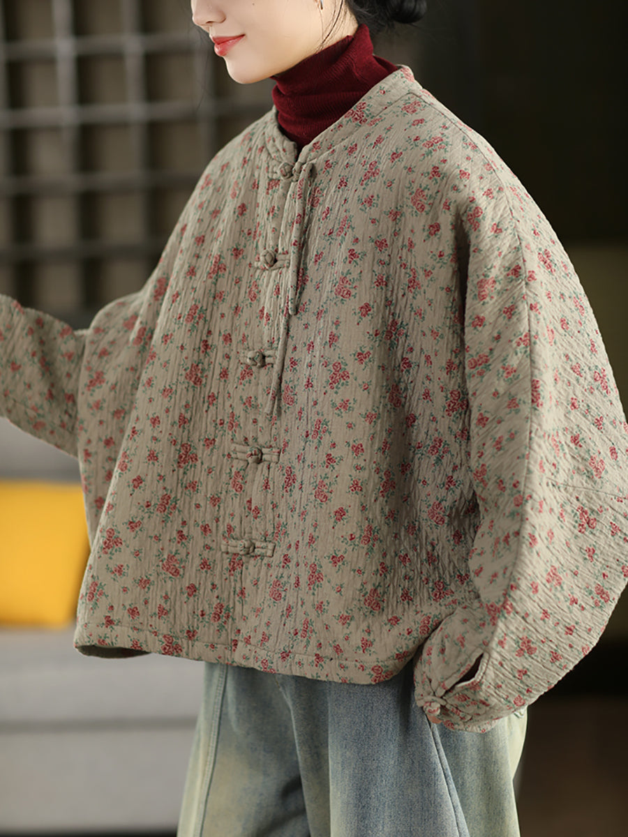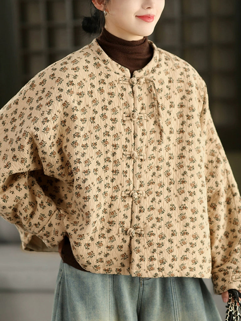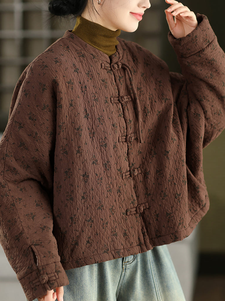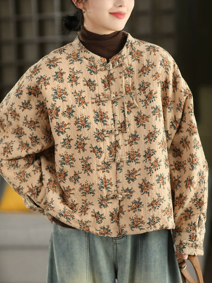 Kvinder Vinter Etnisk Blomster Stand Collar Polstret Frakke