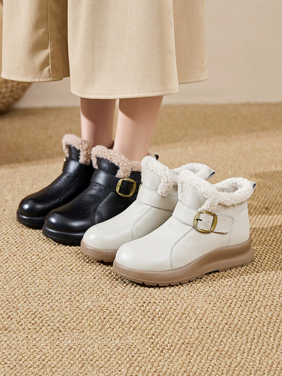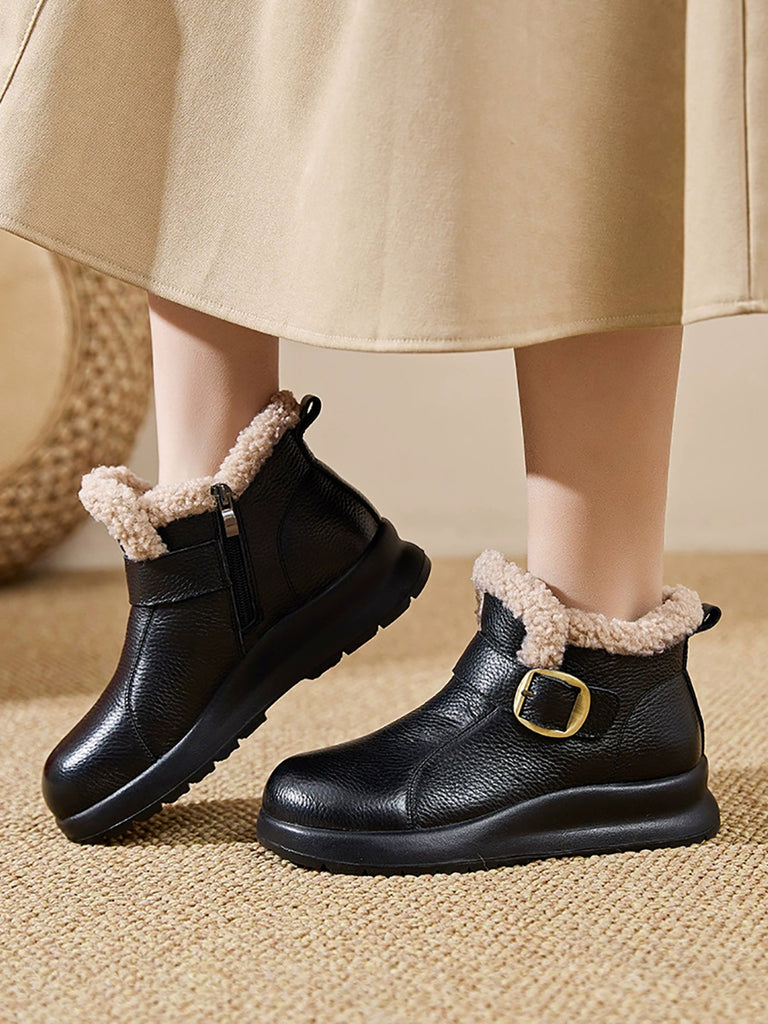 Kvinder Vinter Ankelstøvler i ægte læder med fleecefor