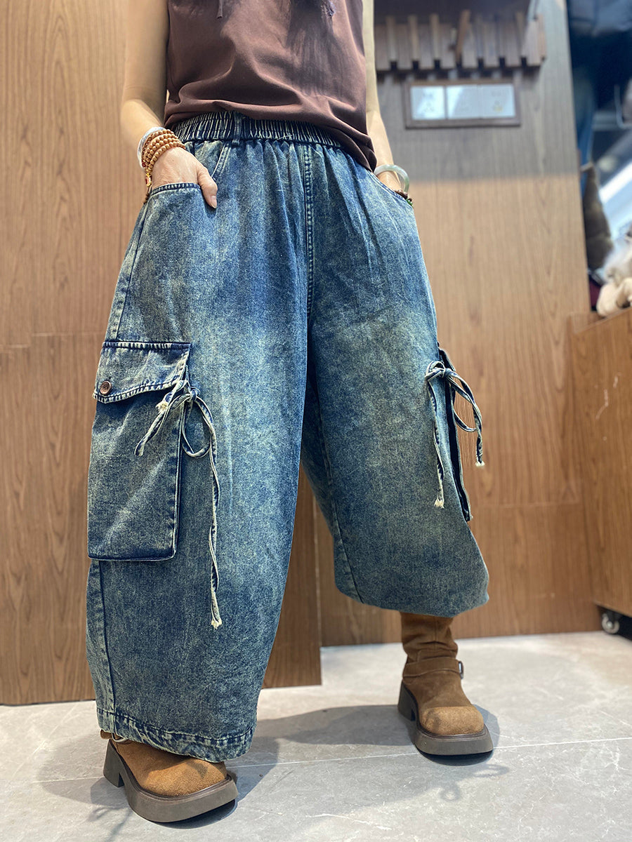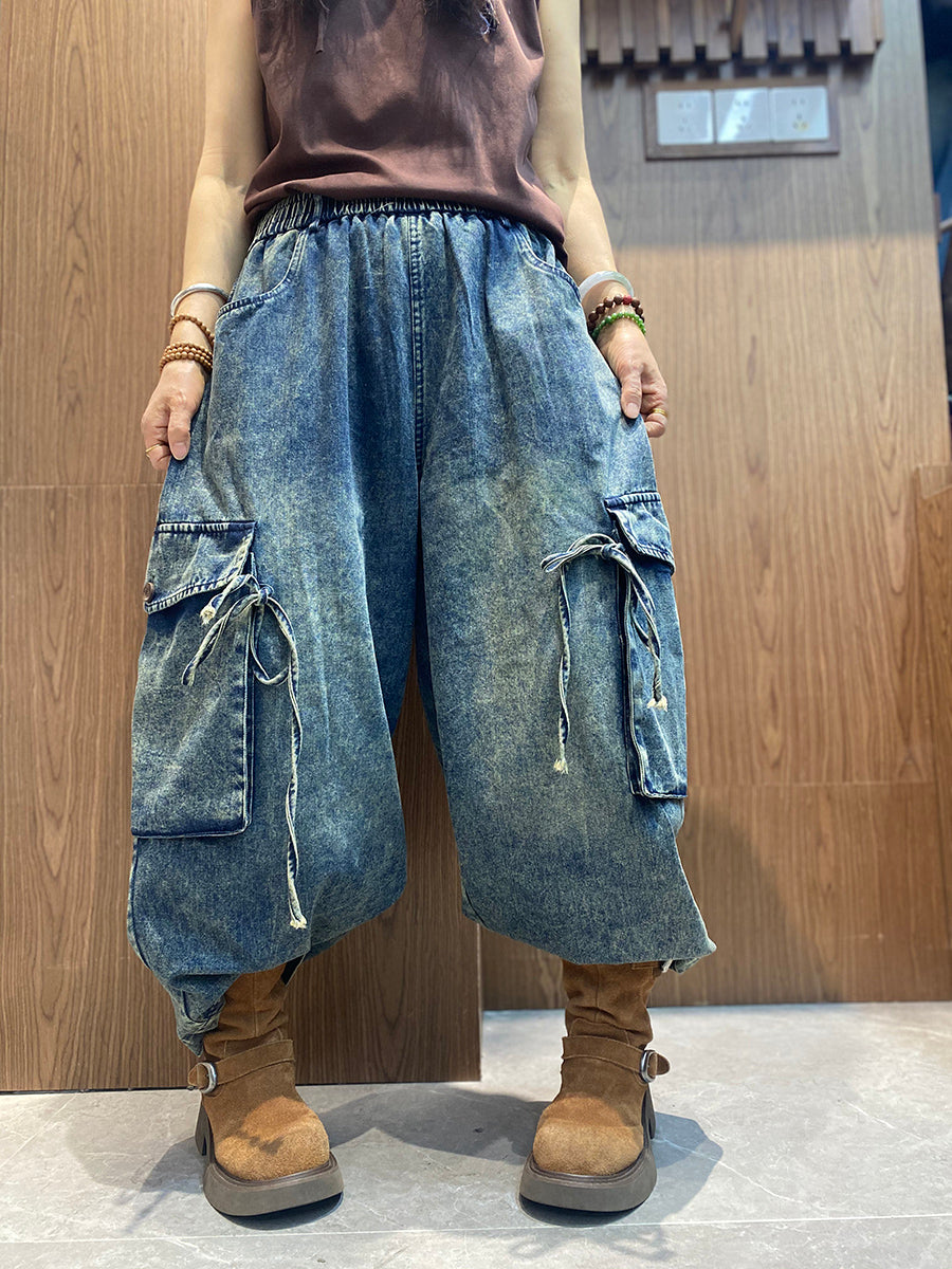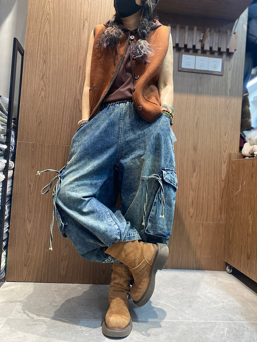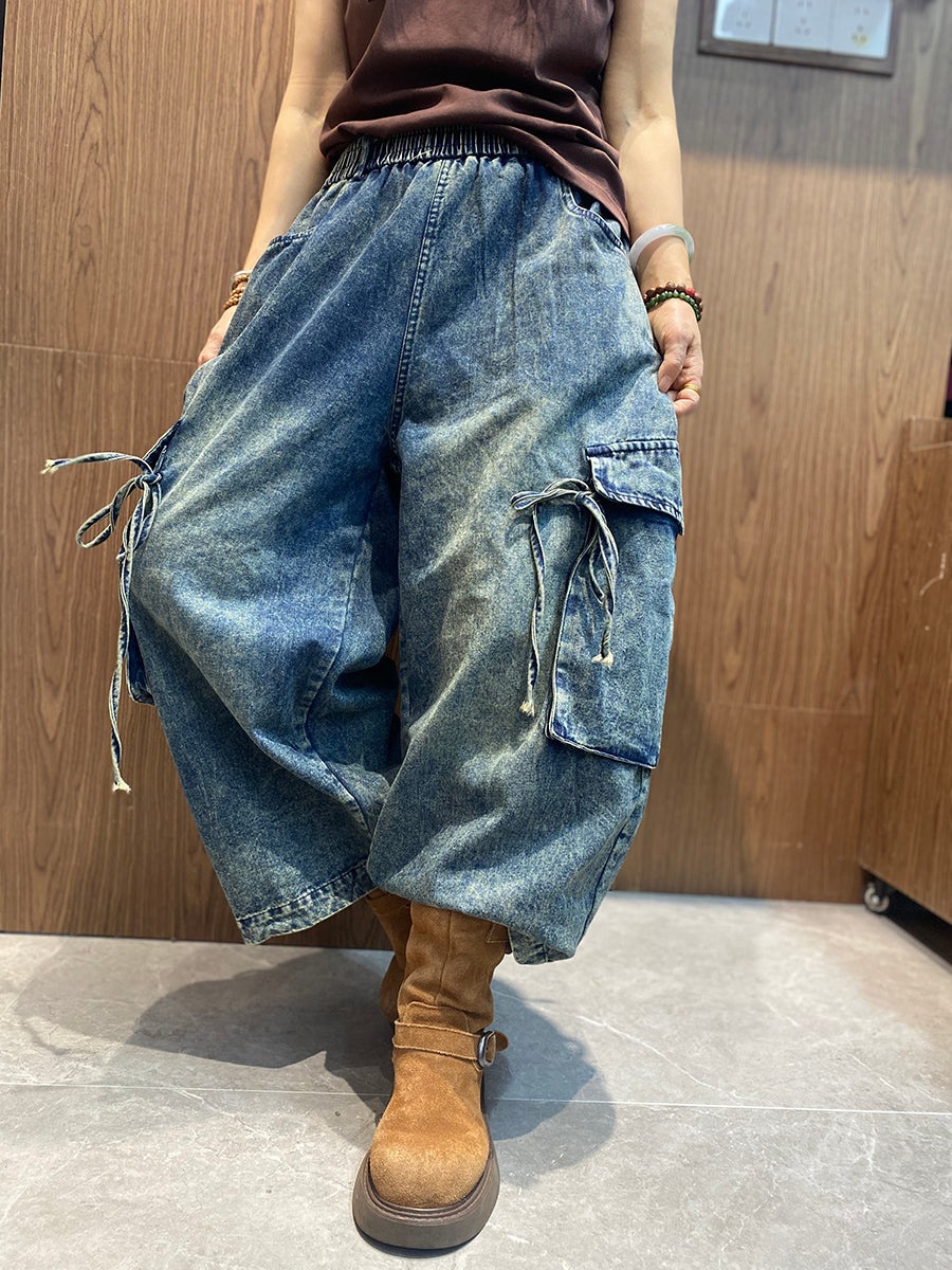 Kvinders forårsbukser med brede ben i denim med vintage-design