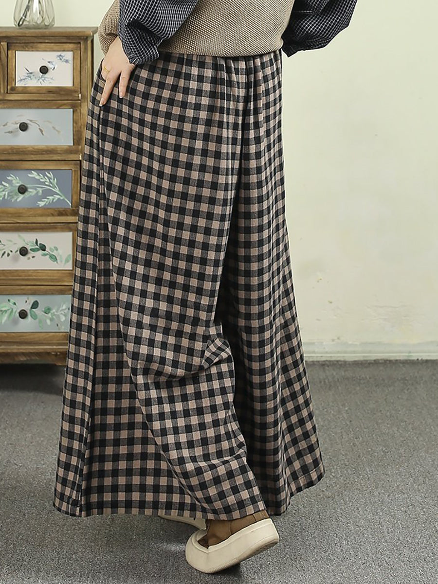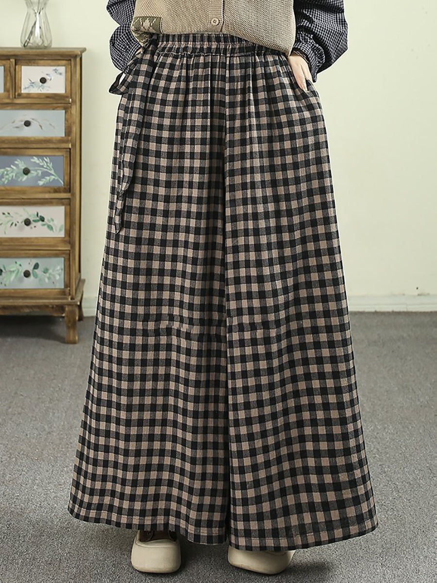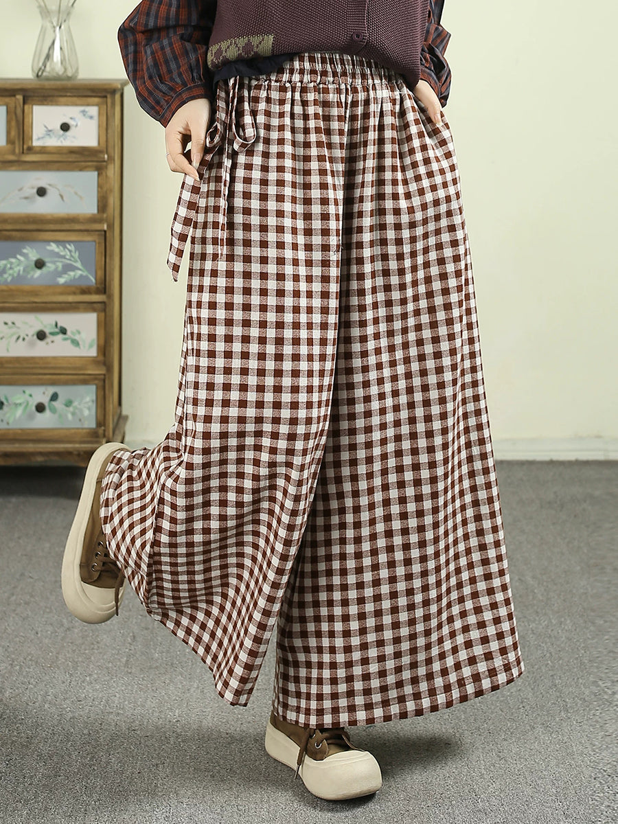 Kvinder Forår Vintage Ternet Bukser Med Brede Ben
