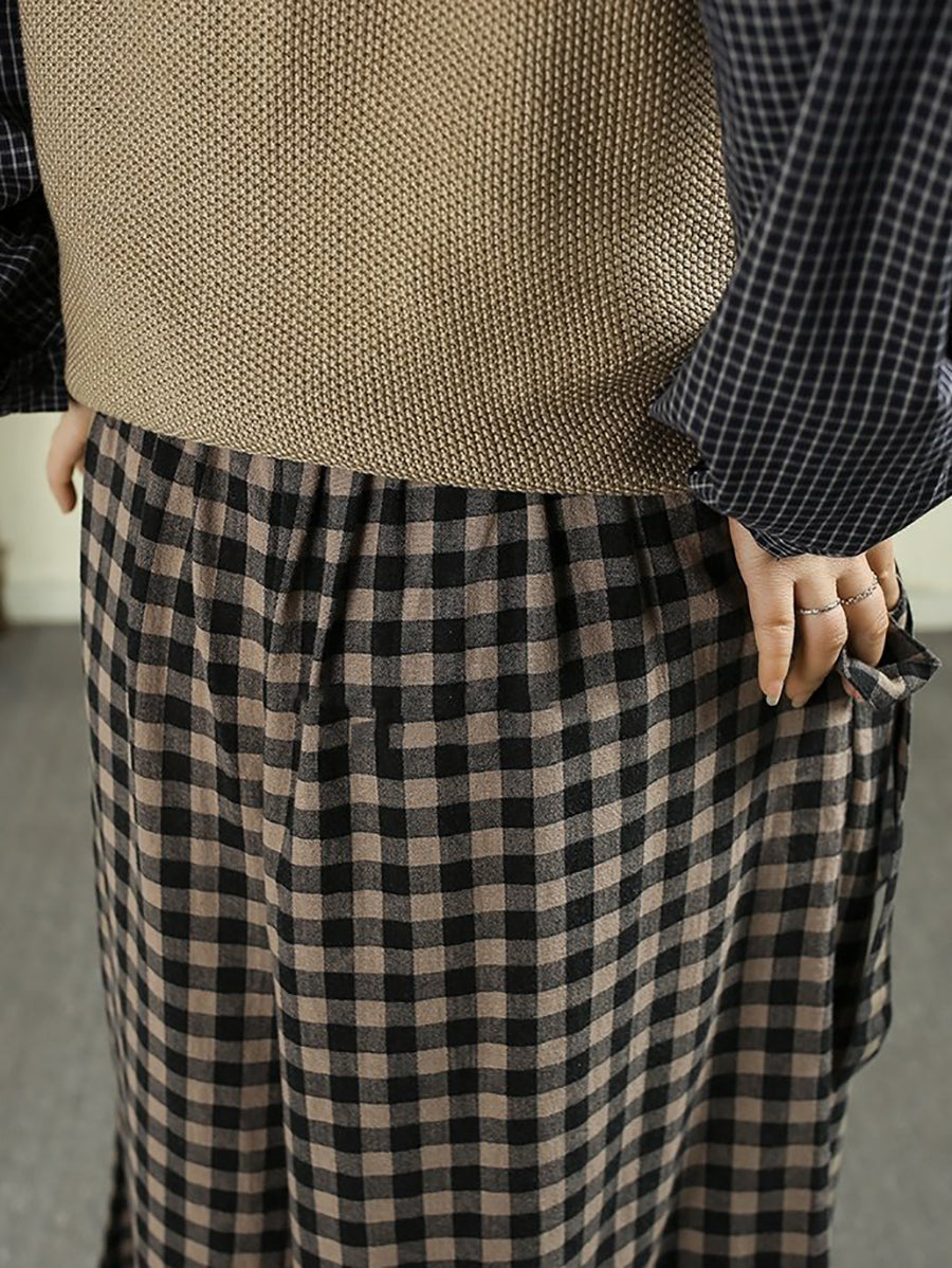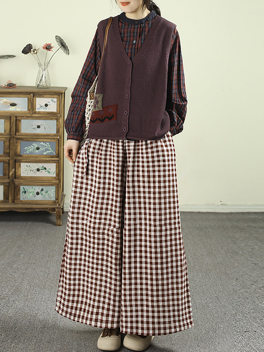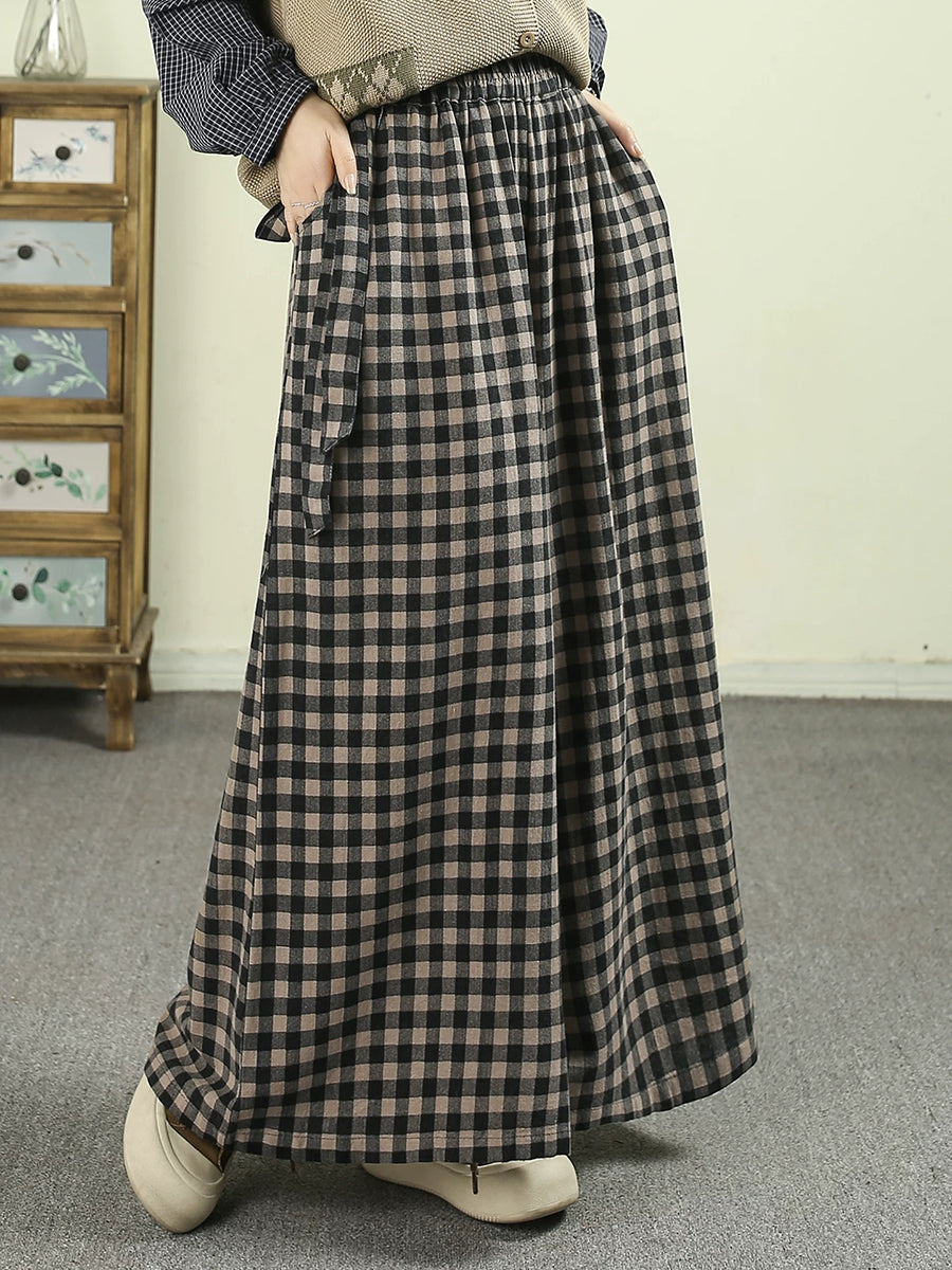 Kvinder Forår Vintage Ternet Bukser Med Brede Ben