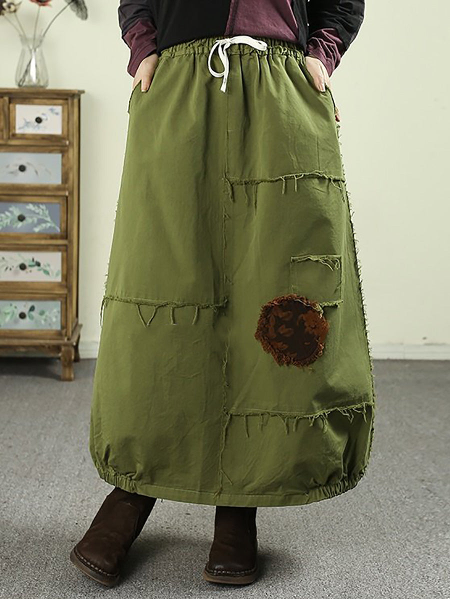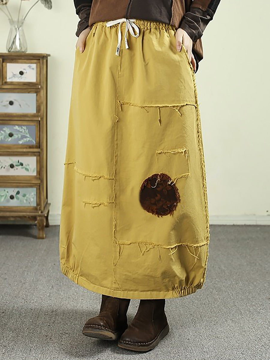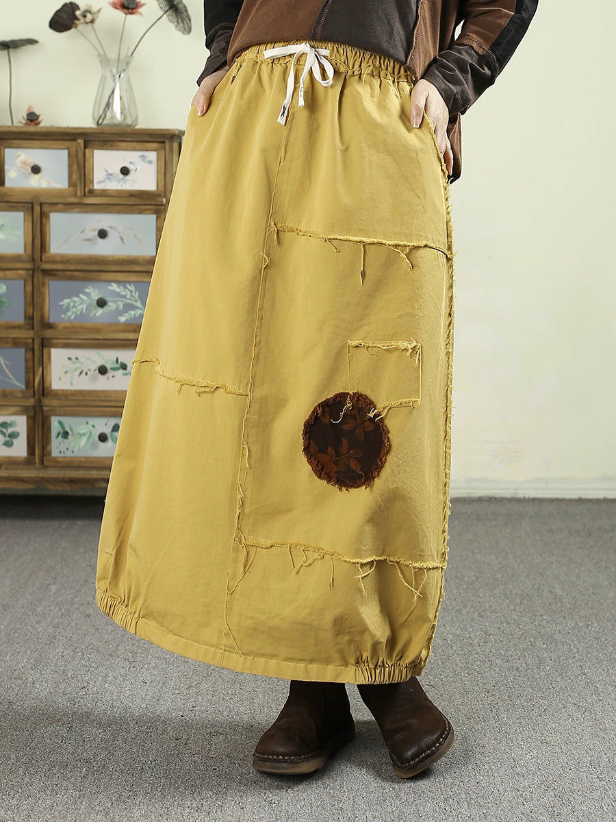 Kvinder Spring Worn Patch 100% Bomuld Bud Nederdel