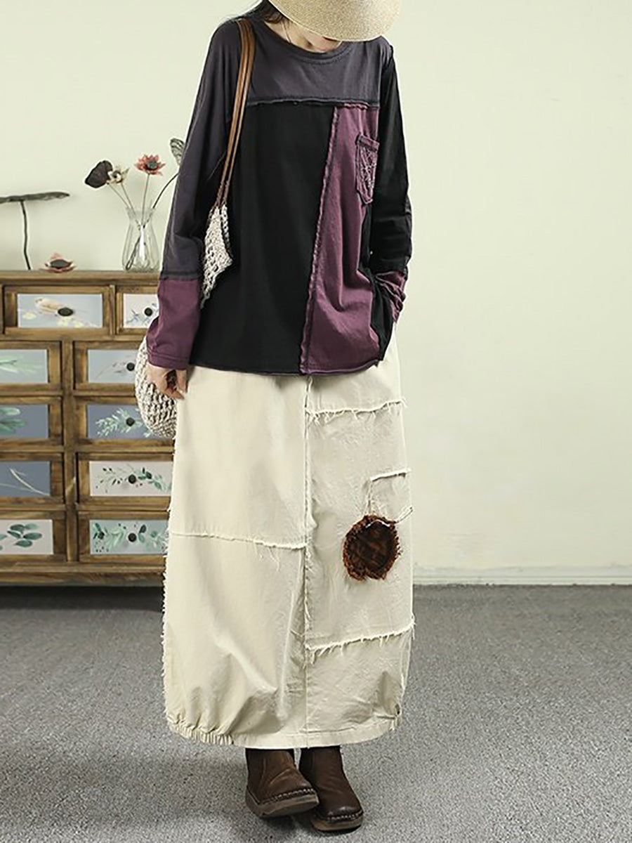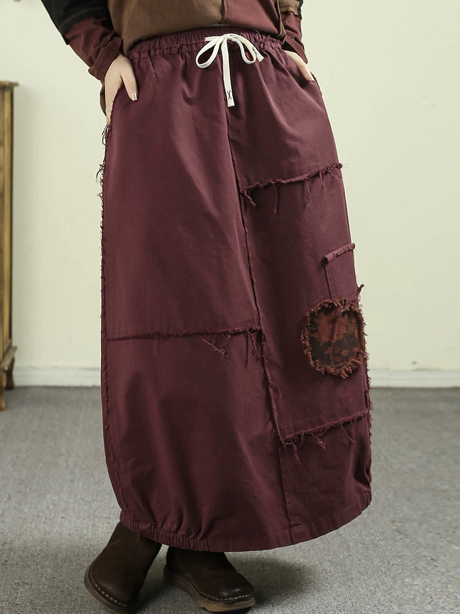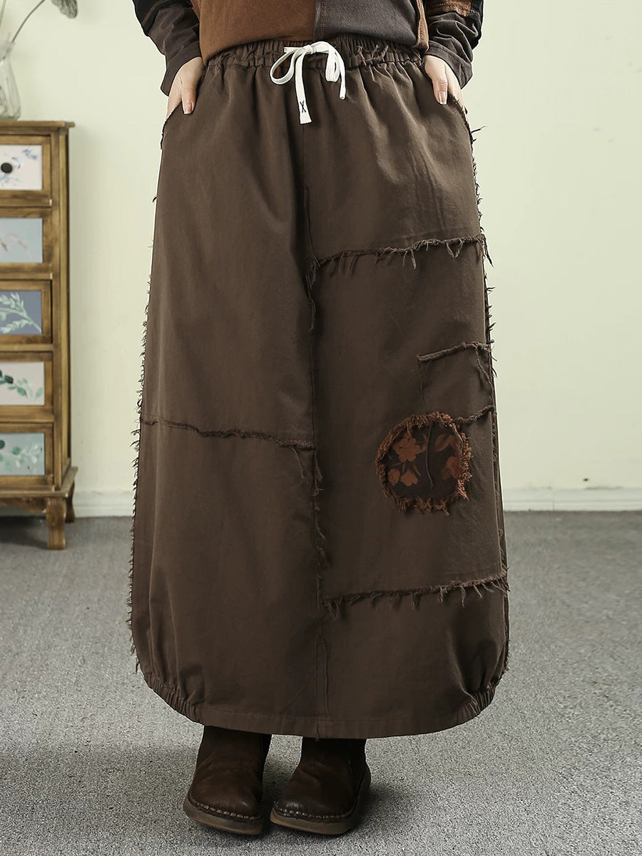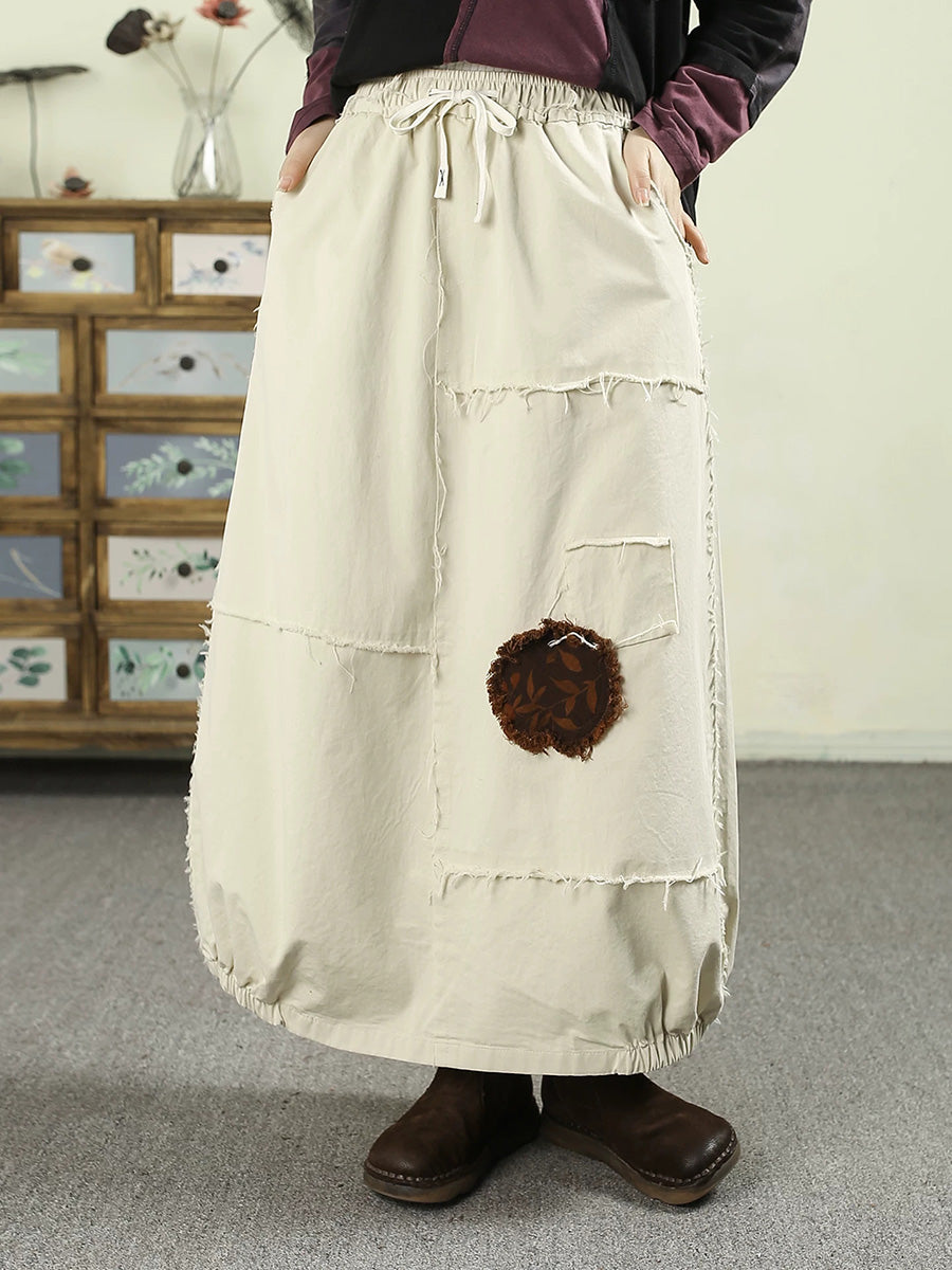 Kvinder Spring Worn Patch 100% Bomuld Bud Nederdel