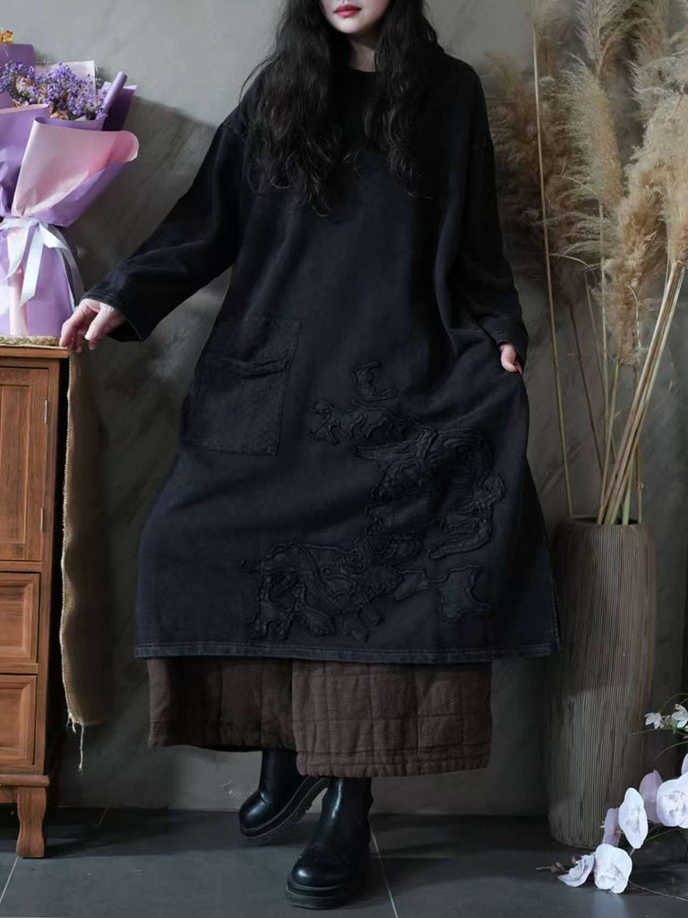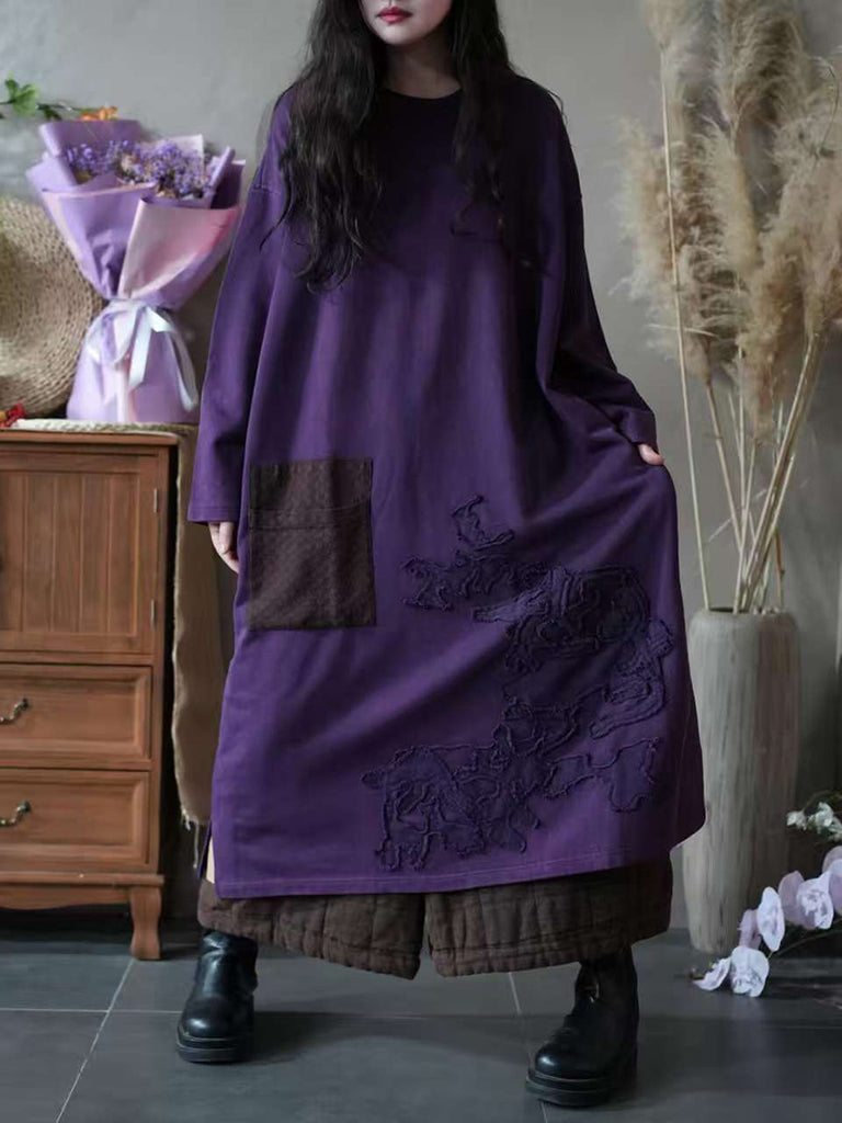 Kvinder Efterårs Vintage Patch Spliced O-hals Kjole