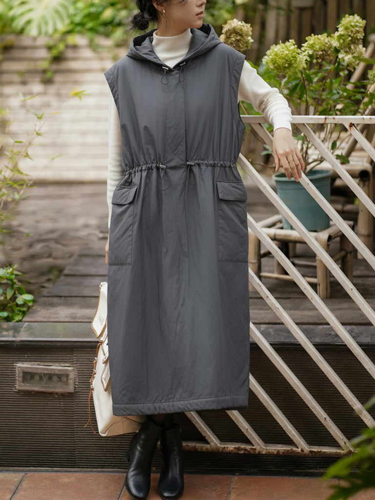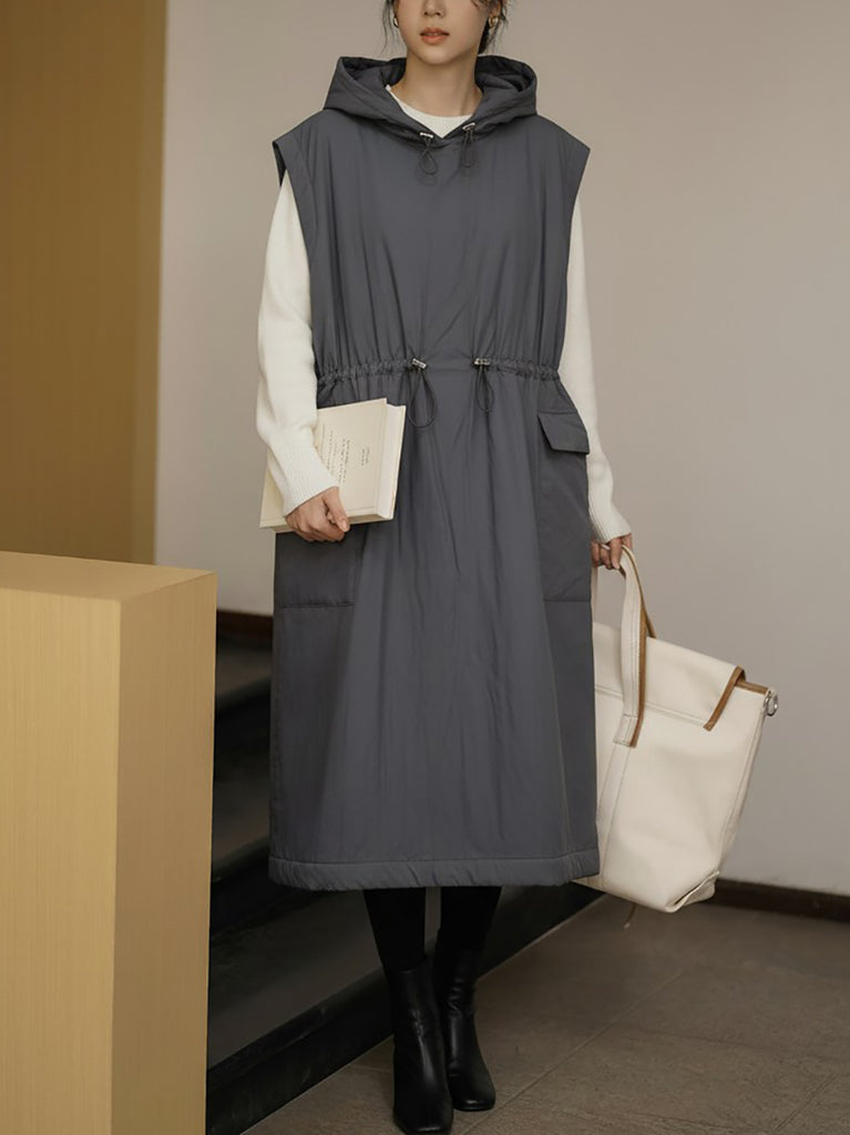Kvinder Efterår Casual Ren Farve Polstret Vestkjole