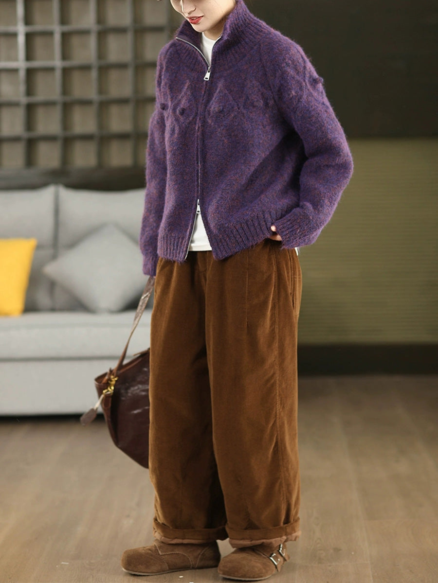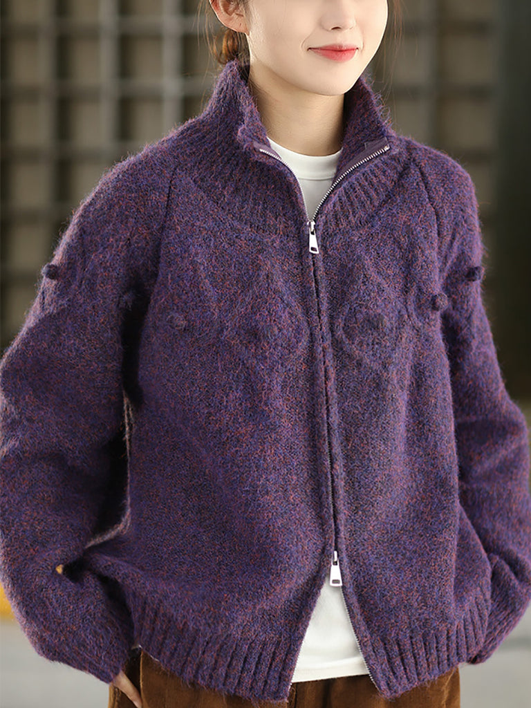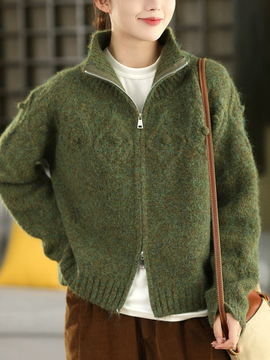 Kvinder Efterår Retro Ren Farve Strikket Ståkrave Sweater