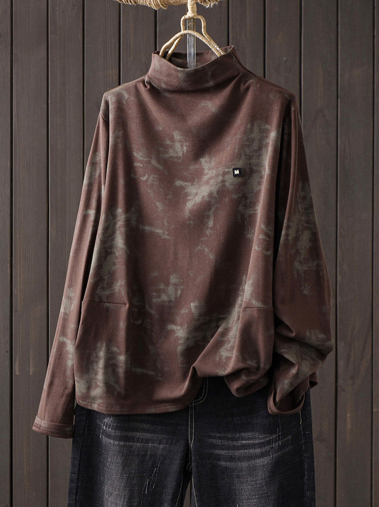 Kvinder Efterårsbluse med tie-dye-mønster og turtleneck-bund