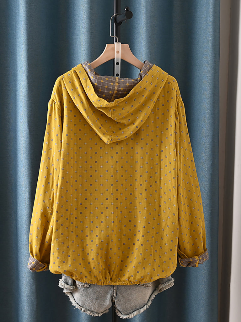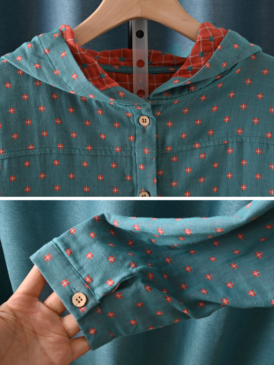Kvinder Efterår Vintage Plaid Hættetrøje 100% Bomuld